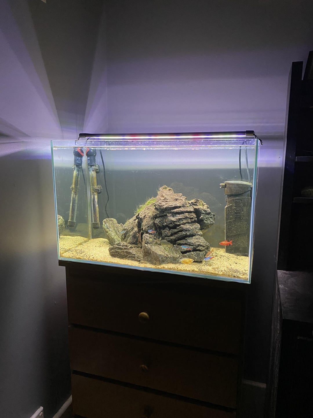 I’ve had this highly successful (fish health wise) tank for a solid two years now, mostly just on here to see what you guys think about it, and any recommendations for elevating the look of it! I’m well aware I need some more plants but I’m currently trying to foster a lot of algae growth on the rocks, let me know what you think 🙂