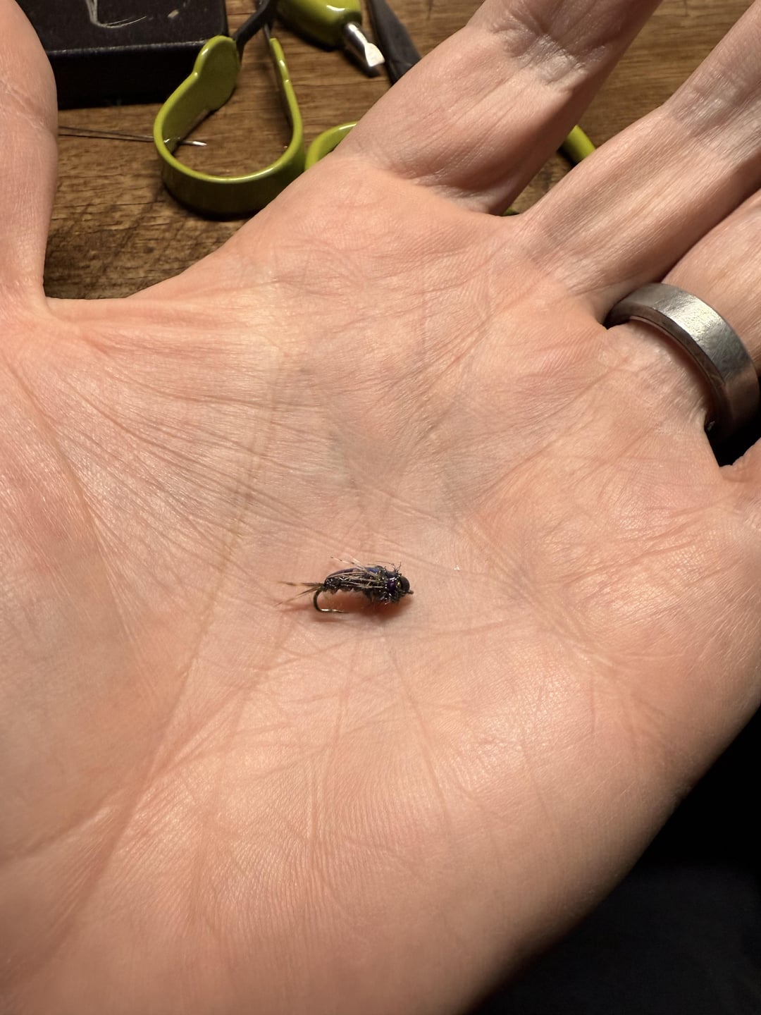 I played around with patterns last night, incorporating pheasant tail and juju baetis elements. We’ll see if it fishes in the snow this weekend
