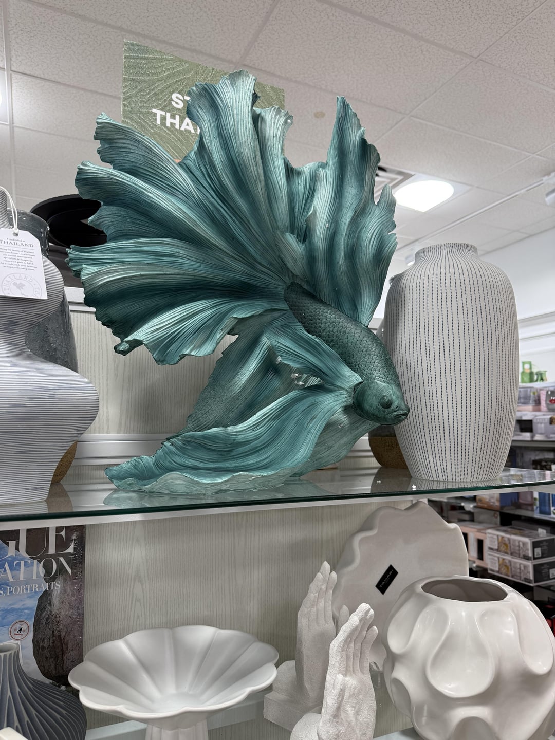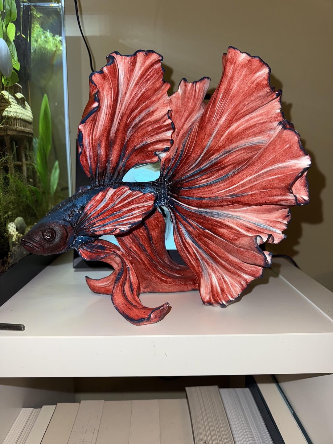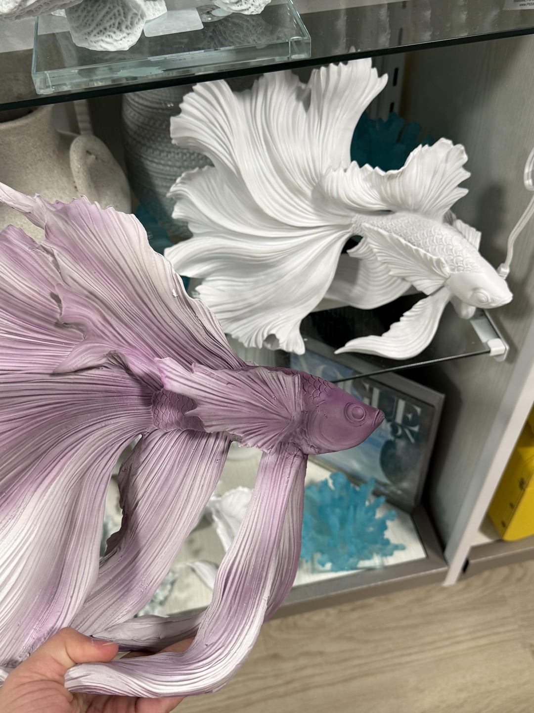 Finally found the betta statues at my local home goods. They had a bunch of colors and sizes ranging from $30-$100. Got myself a $35 white one and painted it to match my boy. Last pic is the one I painted!!