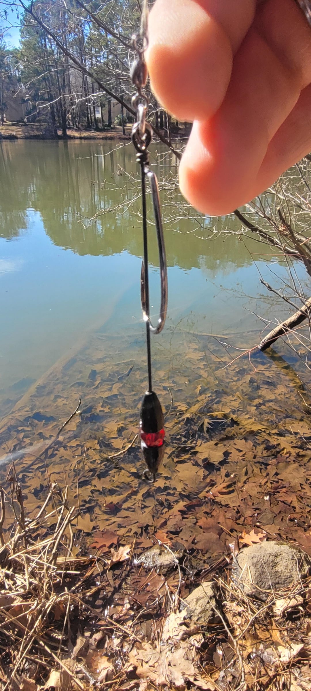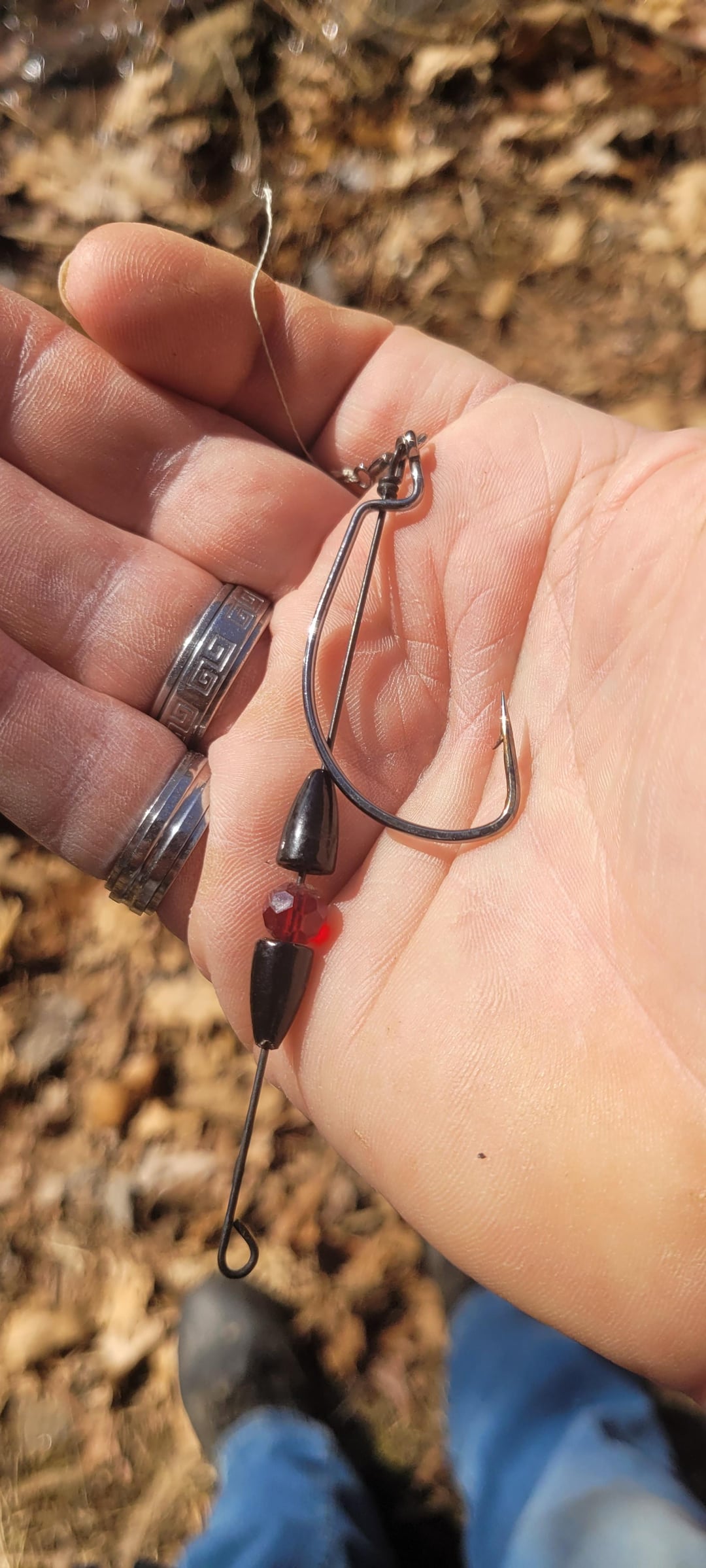 Found this today in a tree. Looks like 2 worm black worm weights with a translucent ruby bead in between all on a beefy wire. Connects to a heavy gauge EWG hook (0/1?) with a barrel swivel. Doesn't appear to be homemade, but its possible. Is it just a blinged out weight? Why is it rigged in such a fashion? I could see maybe for a river or deep water, but this was at a small lake with no significant current or depth. TIA!