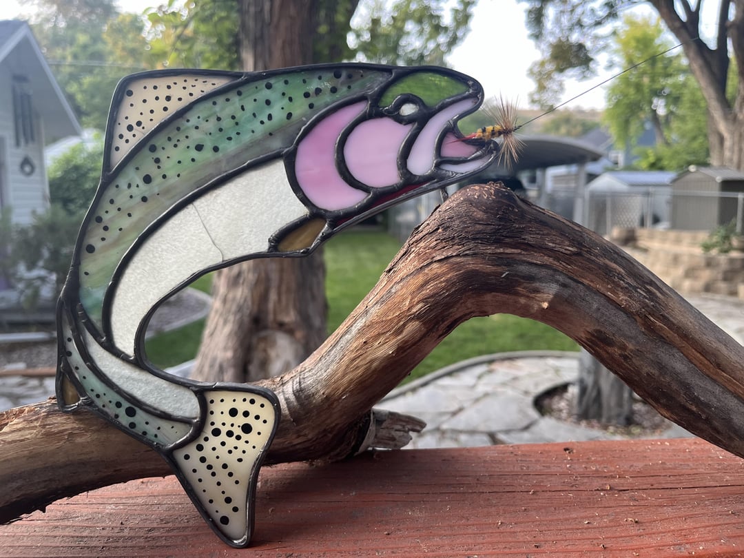 Recently finished my second stained glass trout. I’m a returning fisherman and will be using my fly rod for the first time this Spring. I’ve really enjoyed trout as the focal point in my projects.