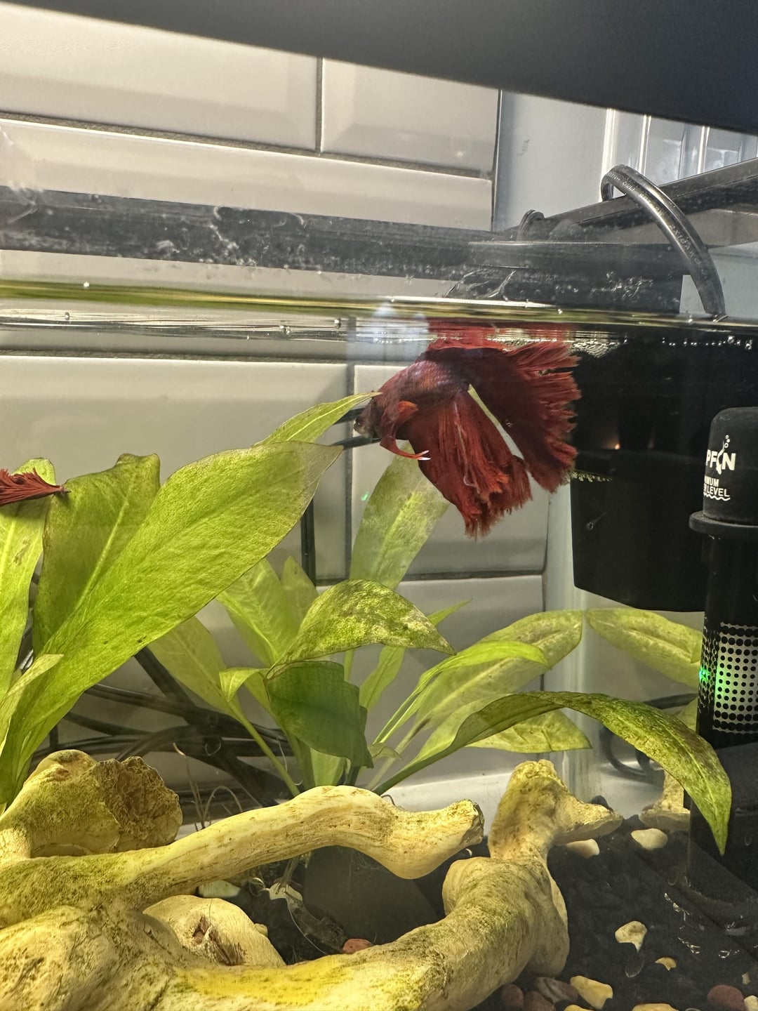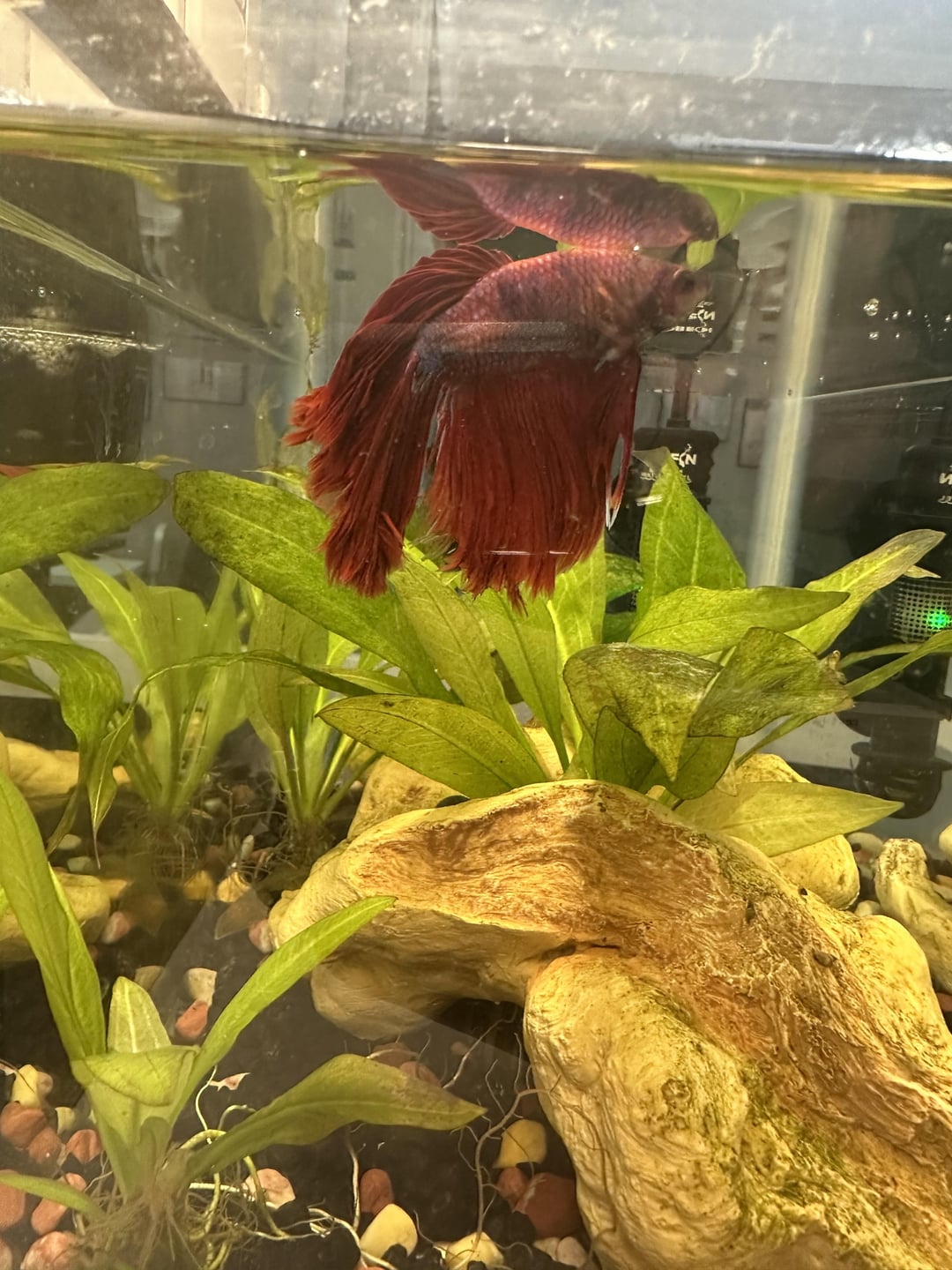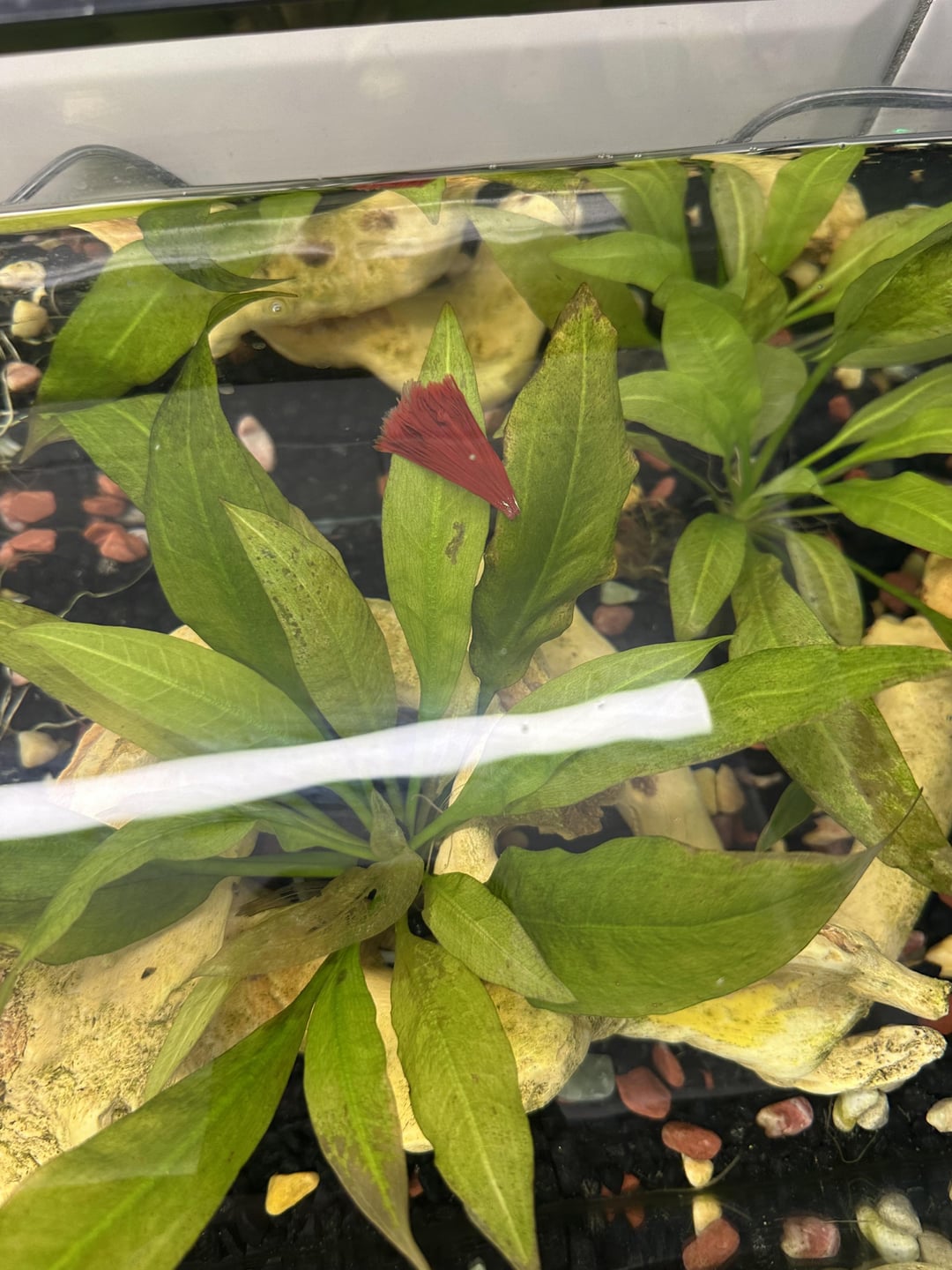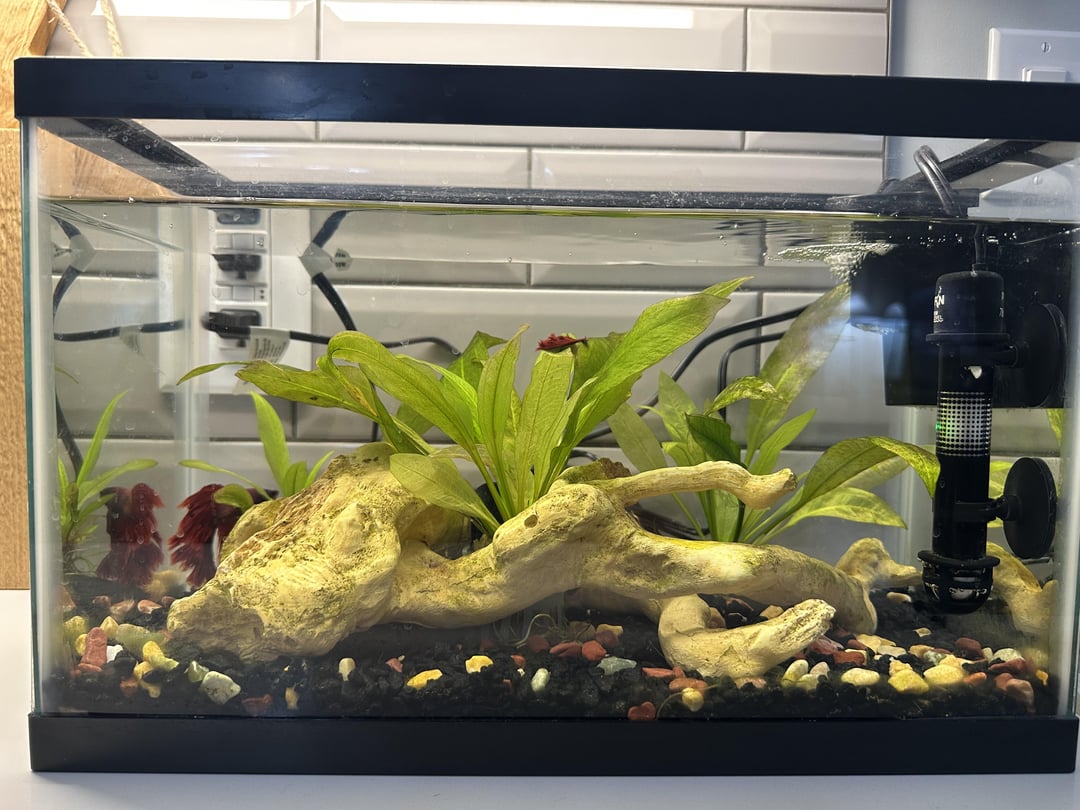 What would cause part of my kids betta’s tail to just fall off? He likes to swim behind the filter, I’m wondering if it got caught. Appreciate any thoughts / criticisms on the tank set up too. 5 gallon tank. Water tests are all normal. Thanks.