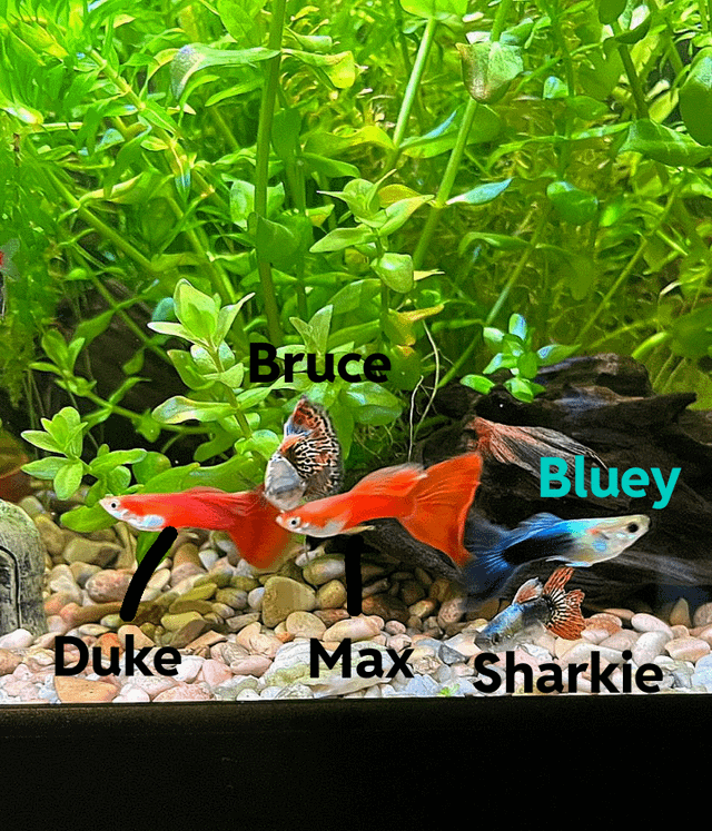 Pd. Second pic are the guppies I already have with their names.