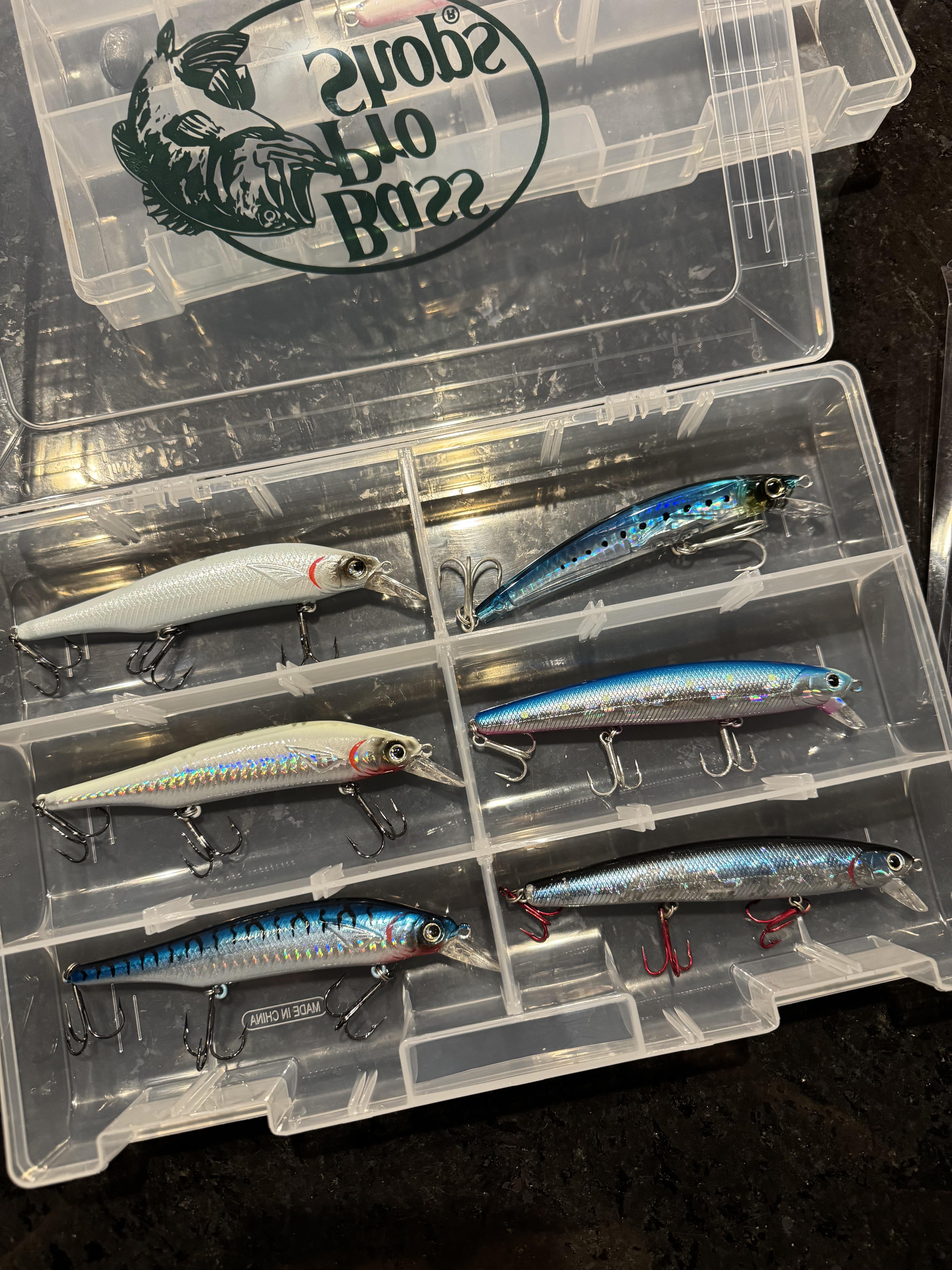 A couple of Luckycraft 110s, one Yo-Zuri crystal minnow, and a few knockoff luckys that I just picked up to test out. The Chica Chica BP LC is also new, excited to try that one, I’ve heard good things Posted by esmthin