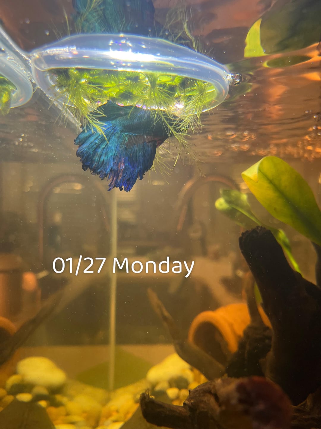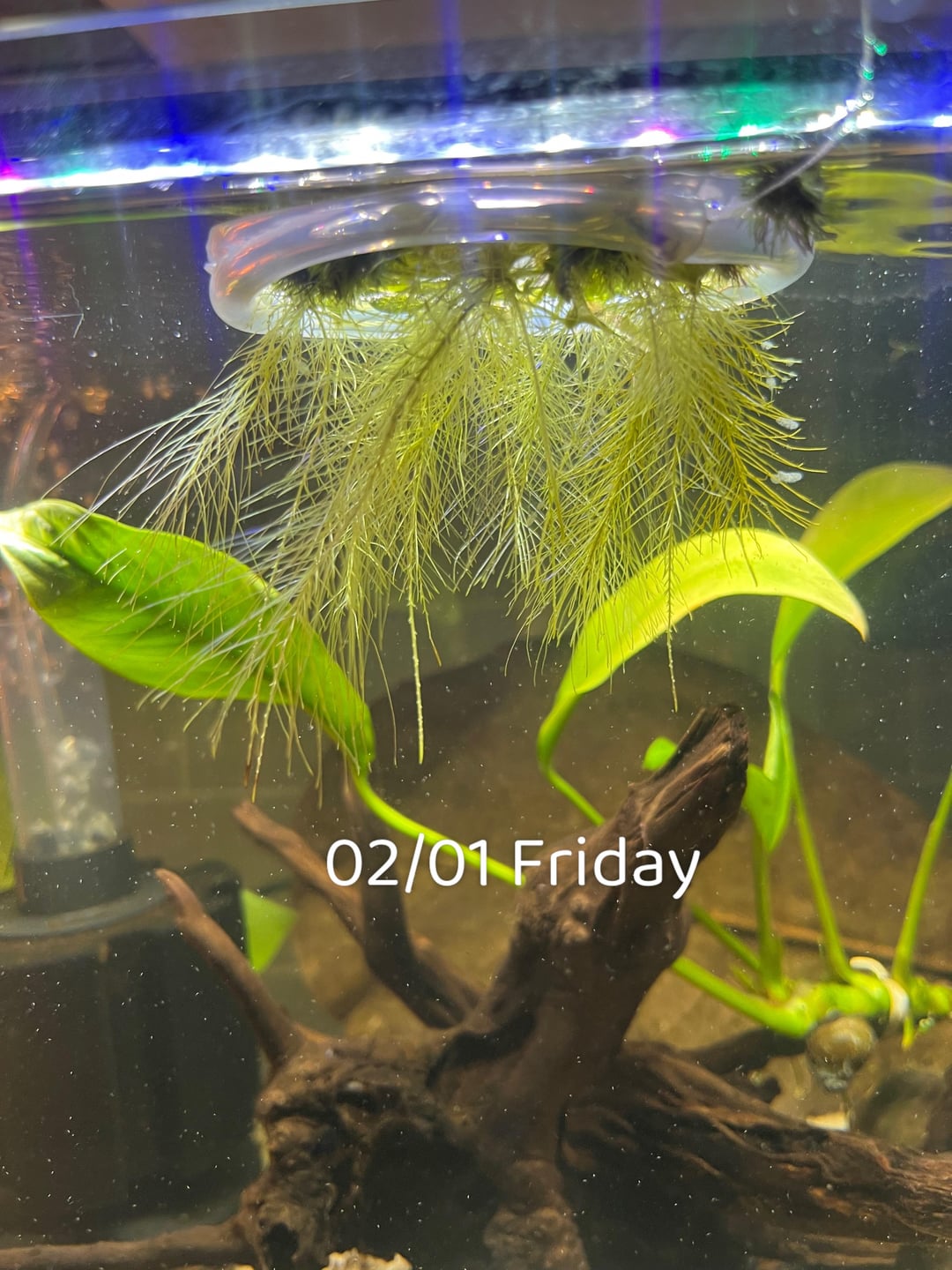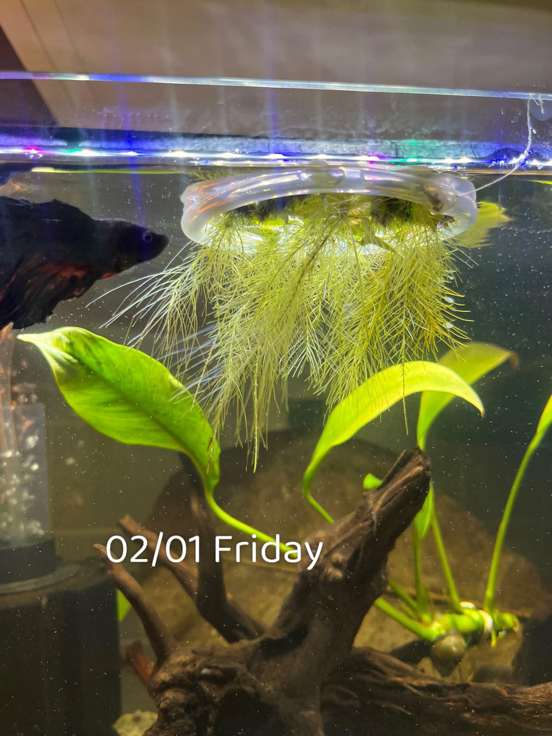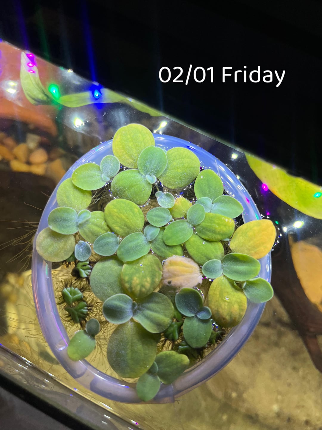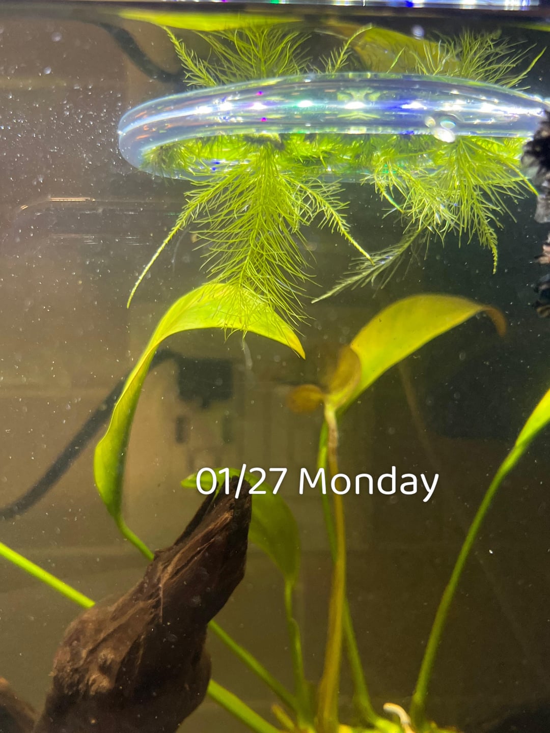 I ordered a packet of some dwarf water lettuce came with an additional floating plants and have a Anubias tied onto drift wood. Why are they going yellow :///. I got my dwarf lettuce on Monday and literally 5 days later have seen color change. The roots have significantly grown out. But I’m worried just help any advice to what my blindness is.
