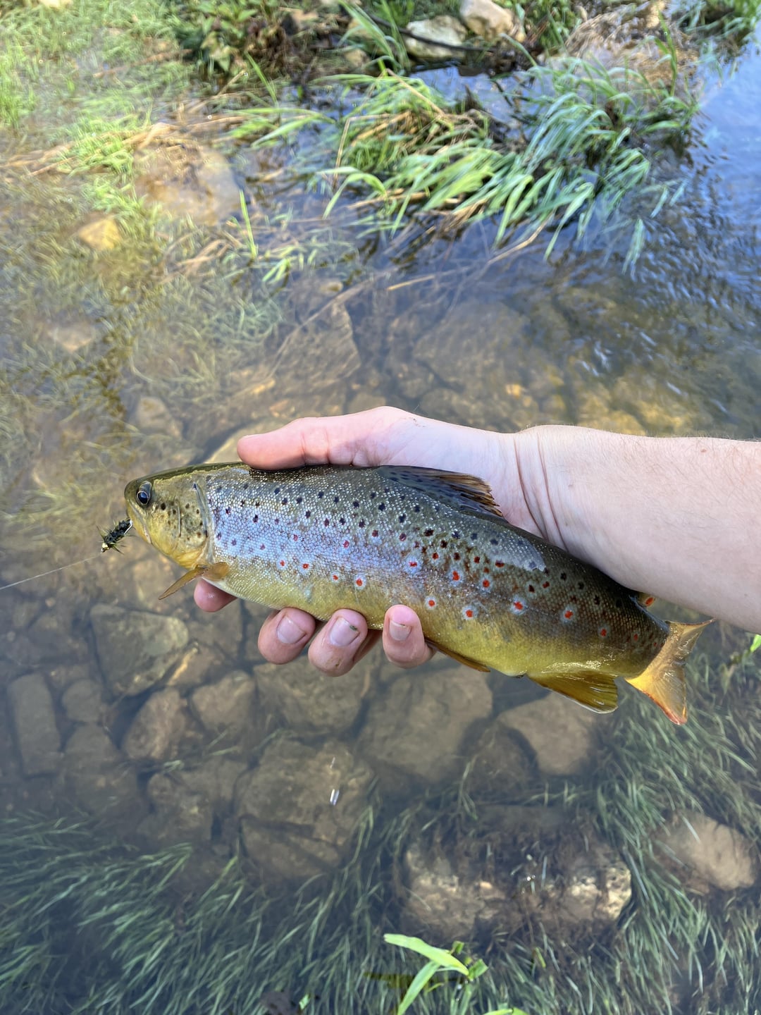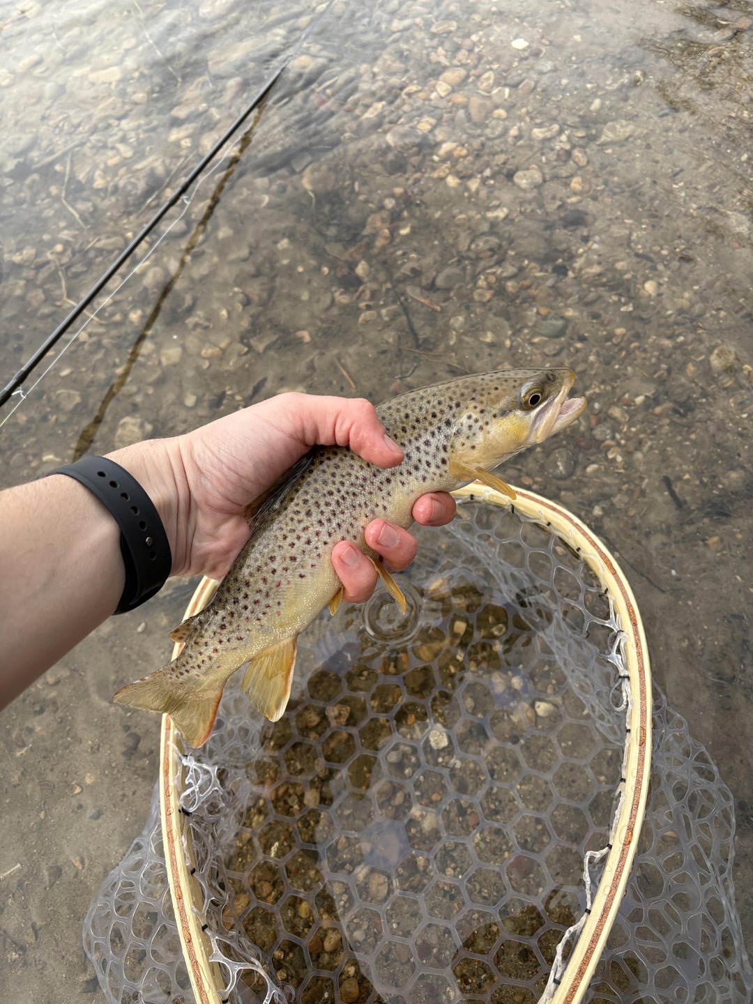 These are both wild browns from same area. The first photo the brown is pale with black spots, the second it has red spots and a lot more color. I rarely keep fish, but when I do I’ve noticed the brown trout with just black spots have had worse meat (white) whereas the ones with red spots and more color will have a pinkish meat that’s flaky and delicious.