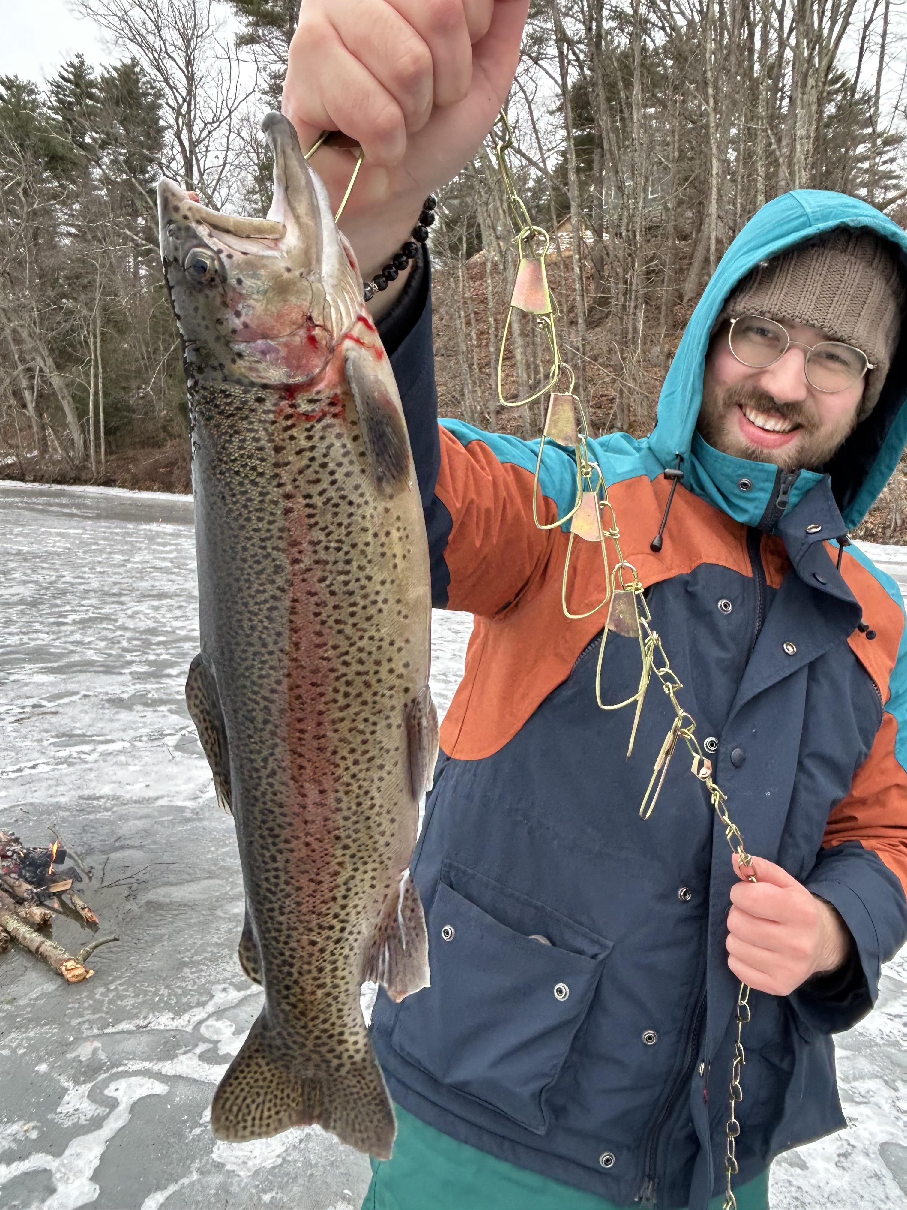 Just started ice fishing with some buddies and caught this beautiful 17” rainbow trout. Posted by Xam_xar