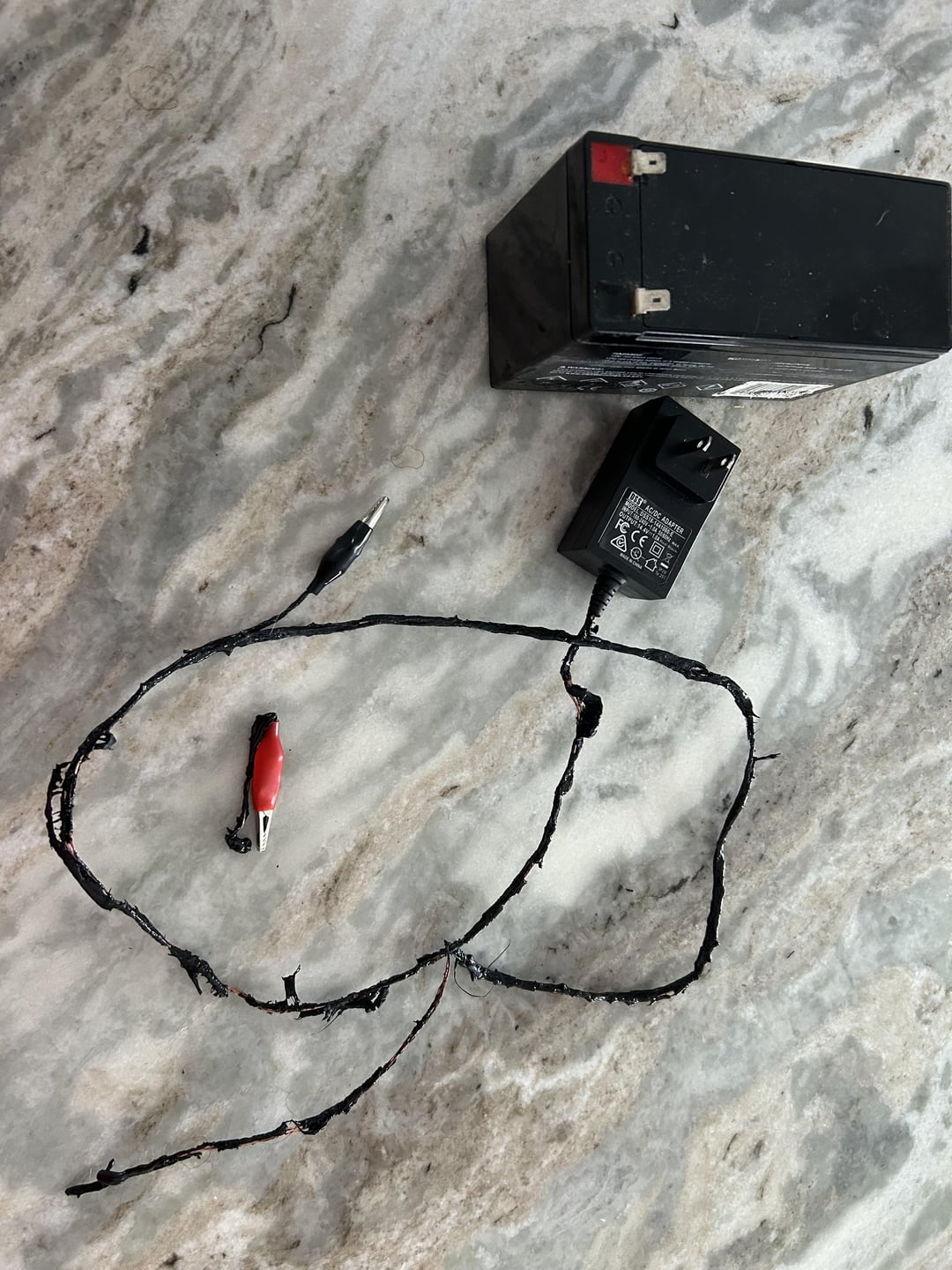 Plugged in my flipover battery charger and attached the alligator clips to the battery. Usually I would leave it to charge, sometimes overnight. Today I remained in the room and saw smoke coming from the wiring between the plug and alligator clips. I tried pulling the wiring in an effort to pull the alligator clips from the battery terminals but the insulation was melted and stuck to the fingers of my left hand. I managed to pull the plug out of the receptacle with my right hand. Received burns to my fingers. Battery is still working. Thank goodness I didn’t leave the room or leave the house. I could have lost my house and two dogs. I’ll never again leave a battery charging when I’m not home.