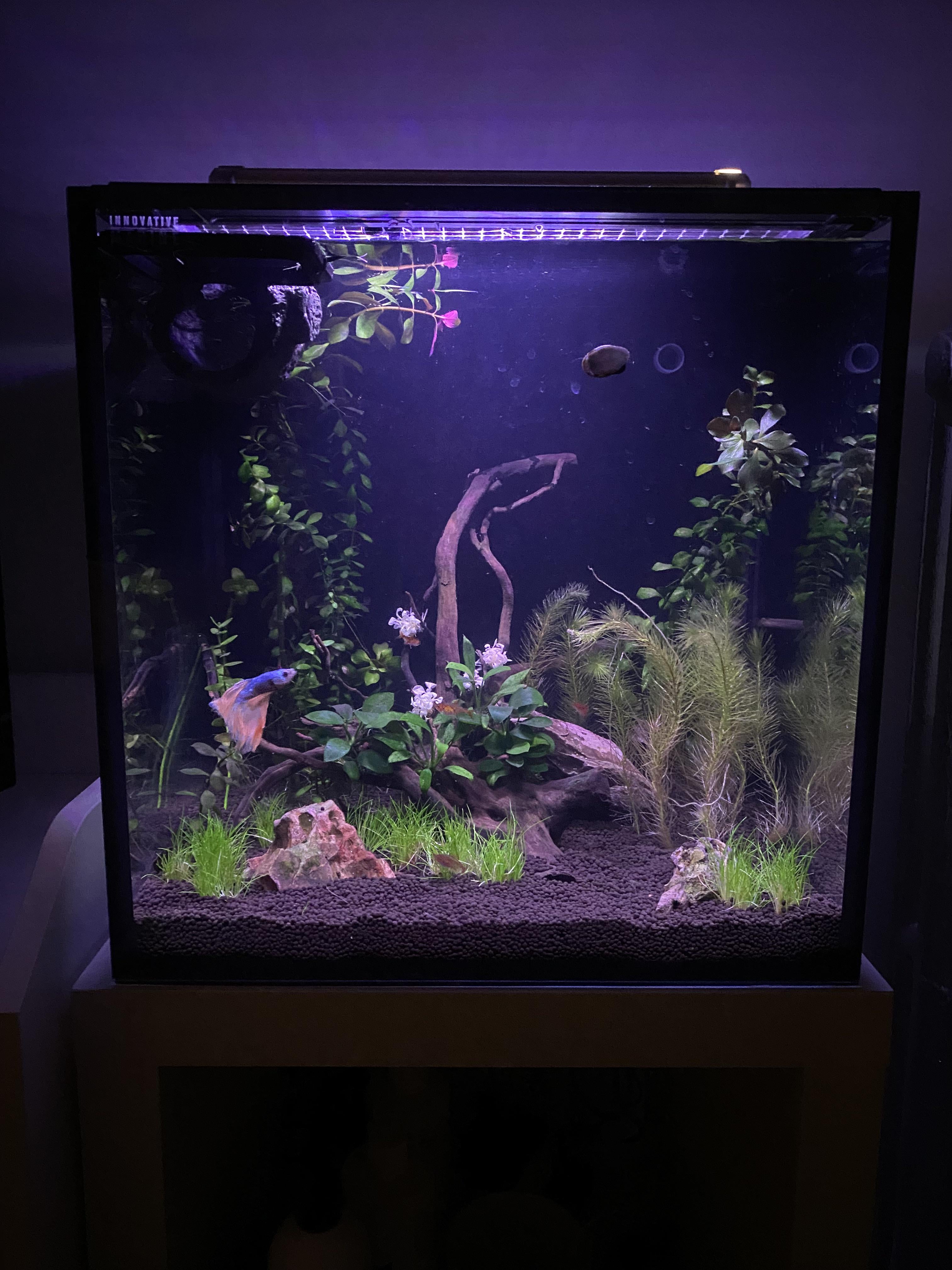Just a fluff post — posted in here a few days ago frantic because I had accidentally cracked the top corner of my 15g and had to figure out how to move my fully established tank over to a new setup. Some very kind people provided some step by step directions for moving everything over, and it was a success!