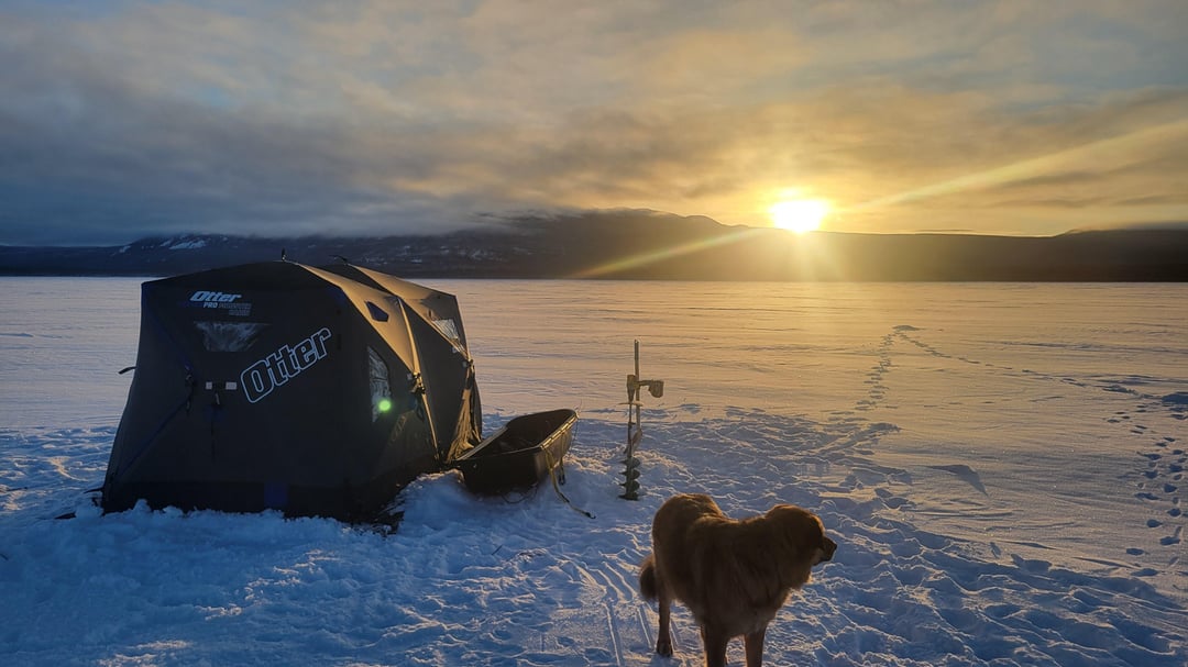 Sometimes a little luck is all you need to catch that slab you've been dreaming of. I was resetting my dead stick rod outside the tent, switching to a bigger bait. I had dropped the bait to the bottom and was pulling it up a little to adjust the depth when bang! Line comes peeling out of my hand and it was on!