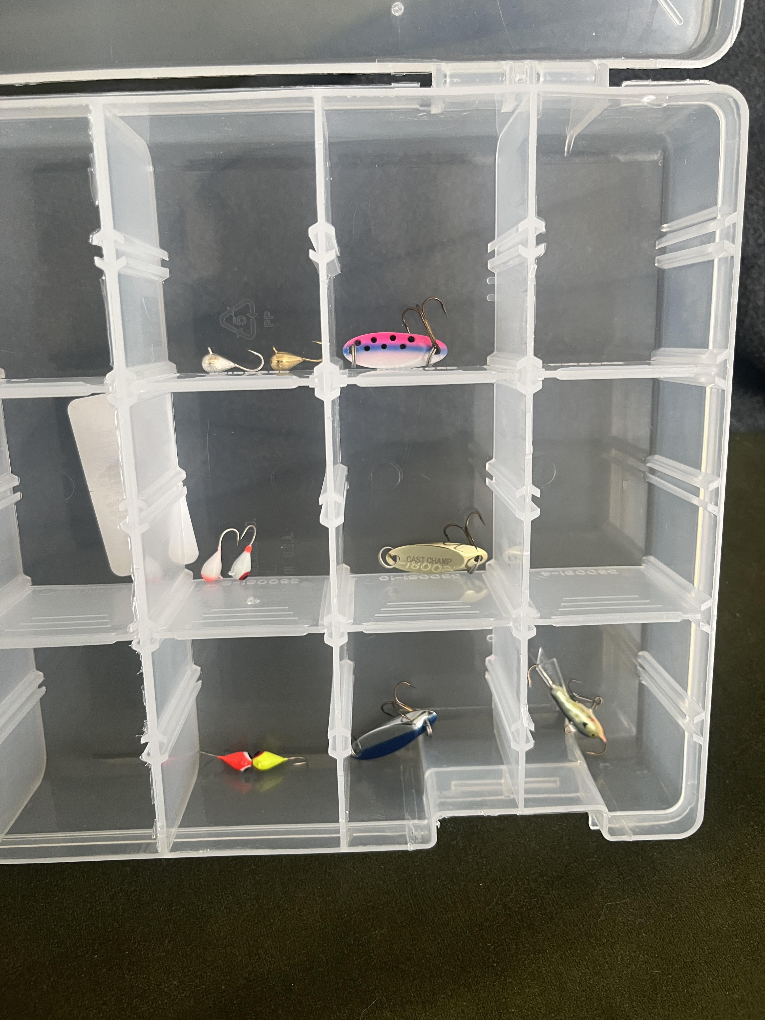 I am partial to buckshot spoons of varying sizes. Great start though and be prepared to spend too much money every year. Although not technically necessary, I do not leave home without my flasher. Just a basic Marcum M1 is what I use.