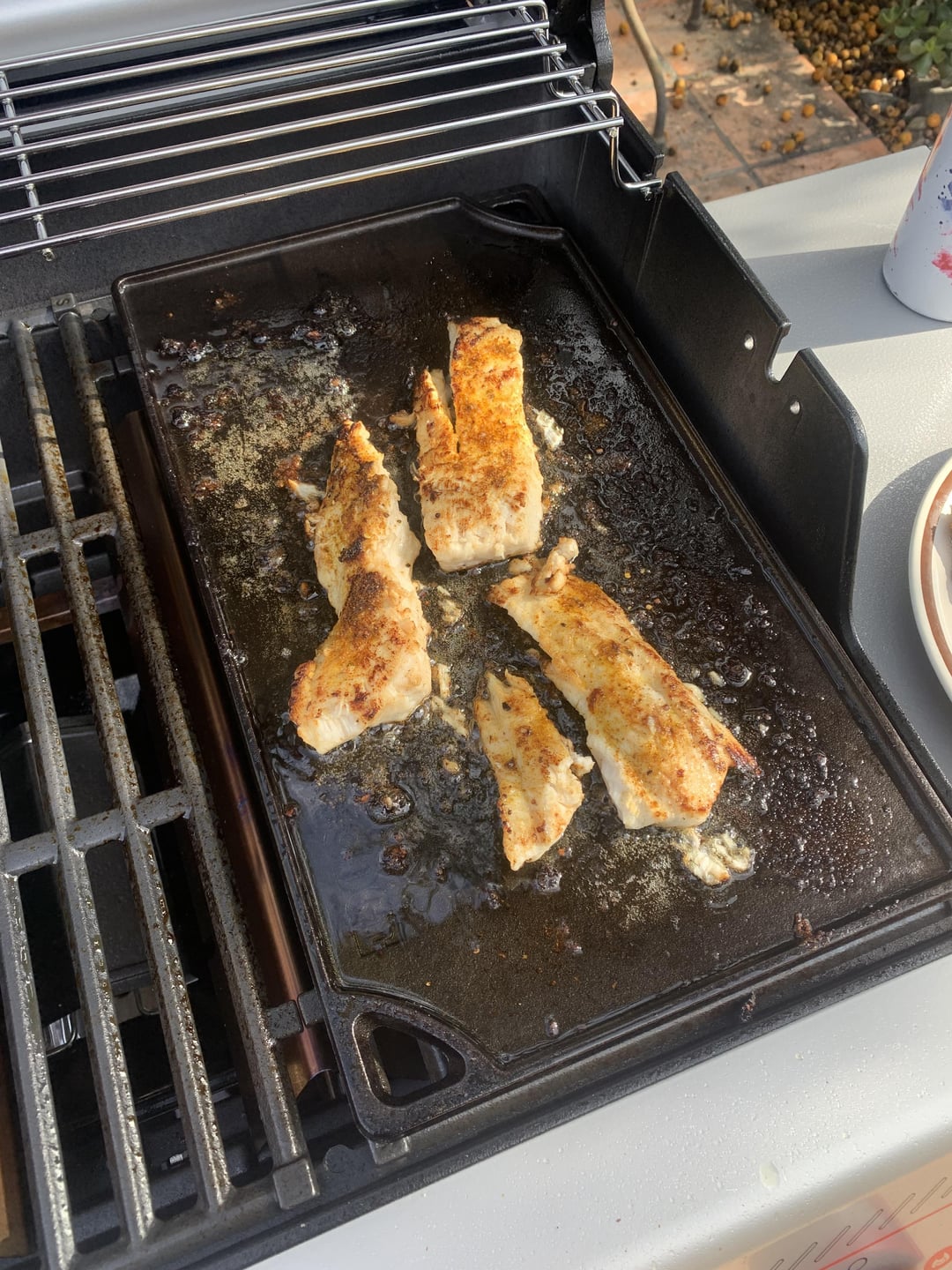 So today, on “Stupid Bowl Sunday”, as James would say, I got the grill hot. Avocado oil, salt, lemon, and a touch of spice. I brought it in for my family to try and OH MY! It was delicious! White flaky mild meat.