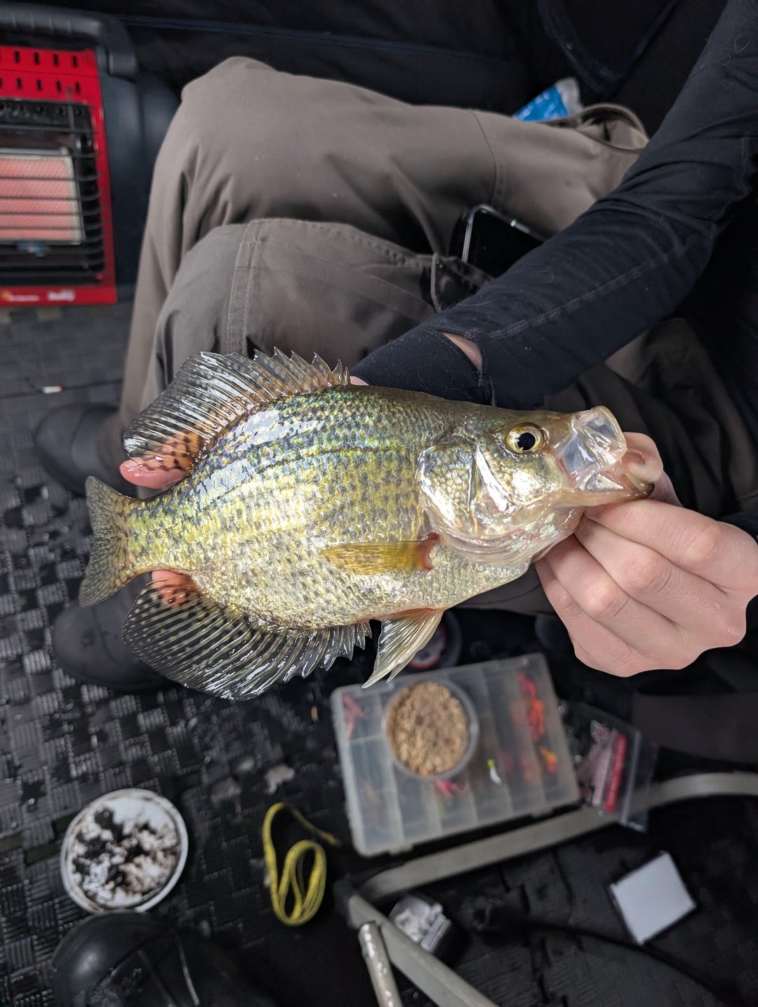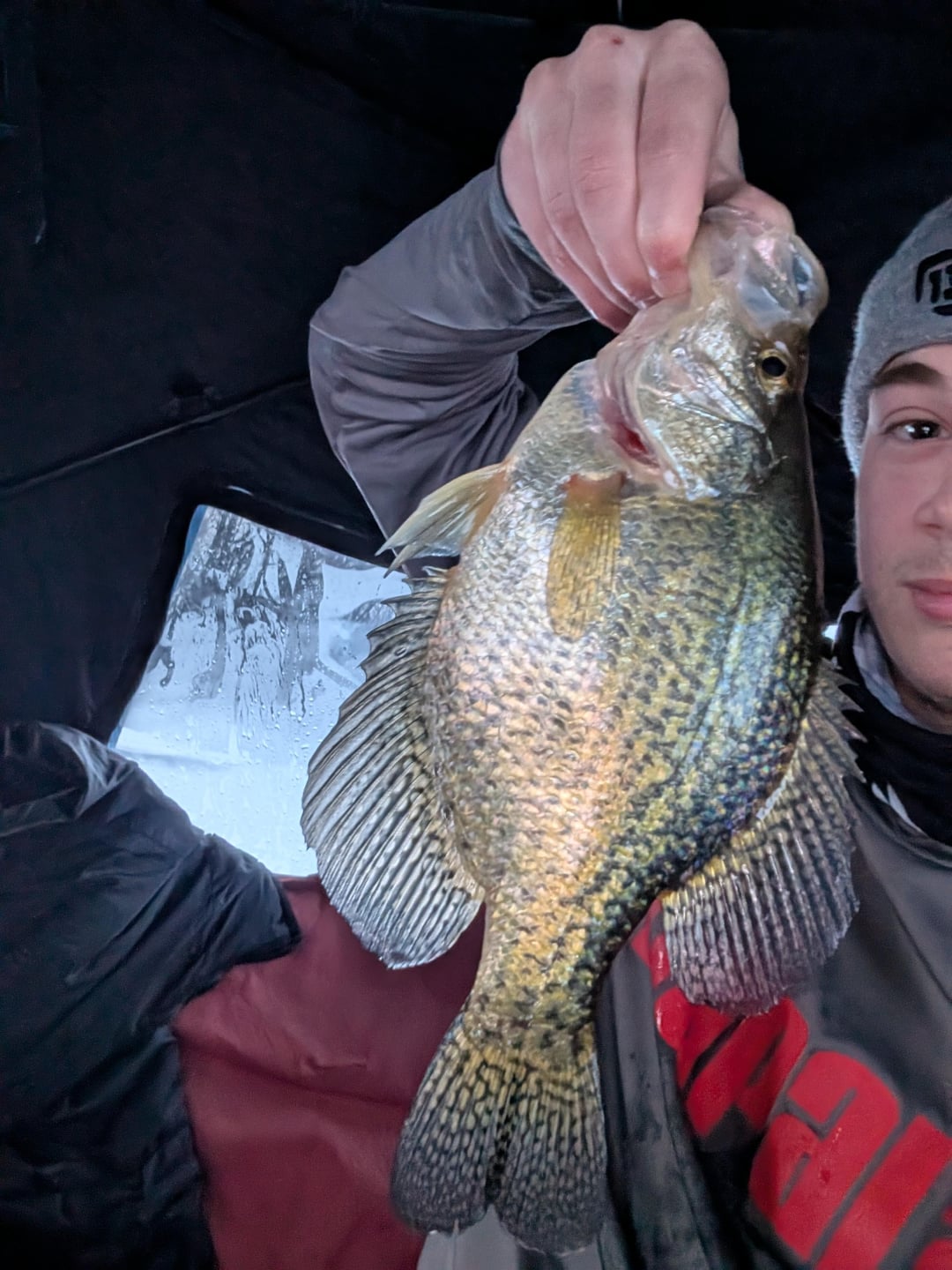Went out Sunday with a friend trying to target crappie, didn't know much about them but got to a spot where i knew they could be! Luckily they were active and we slayed them all day! 28 in total! They were all caught on micro jig on medium light rod and we got some beautiful 13" slab! It was a blast to see them follow our jig on the fishfinder. It was definitely my best day ice fishing since 4 years. All fish were released!💪🎣🤩