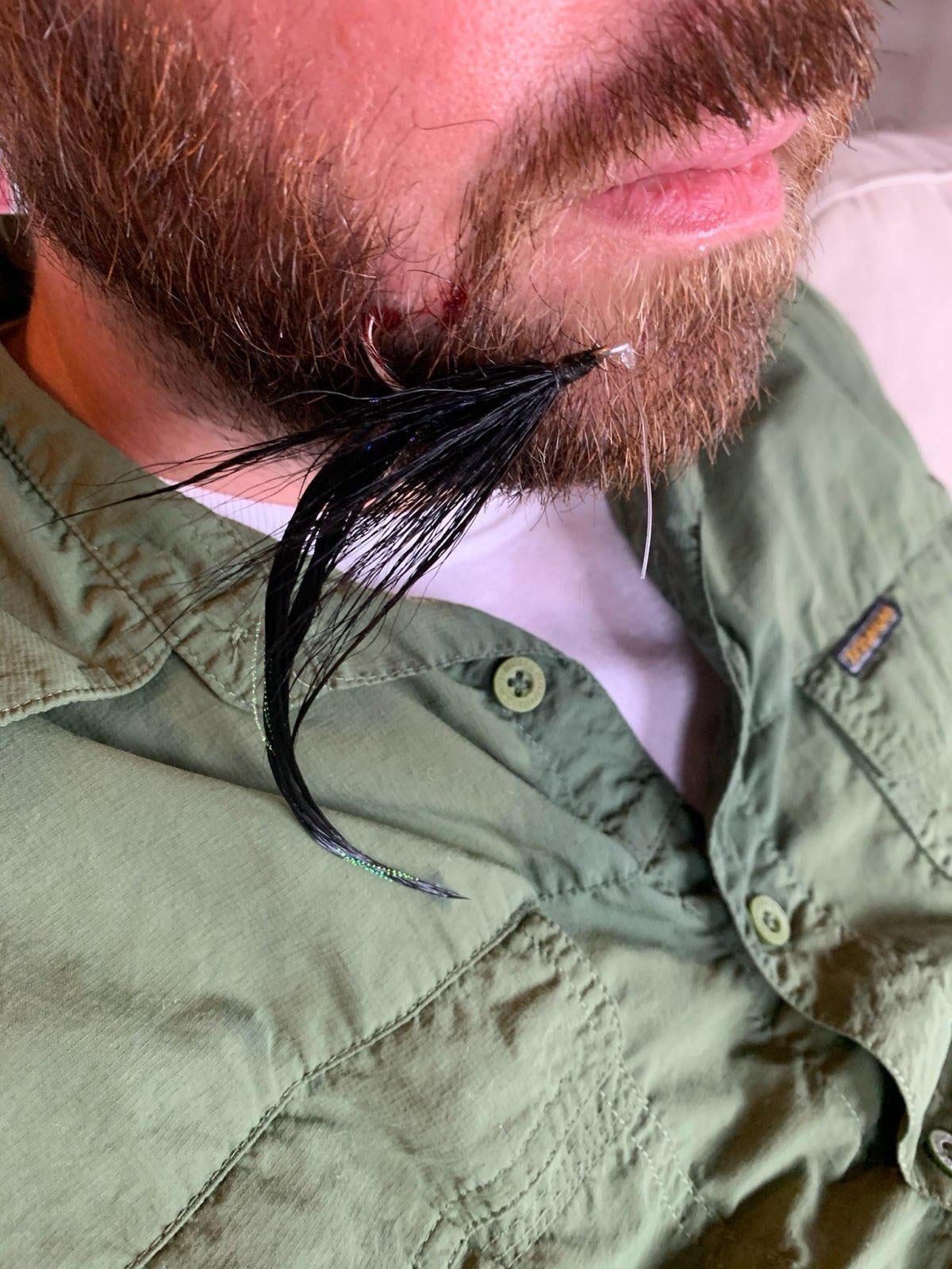 First time I ever attempted to fly fish, I hooked myself in the shoulder. Can’t imagine what it’s like in the face.