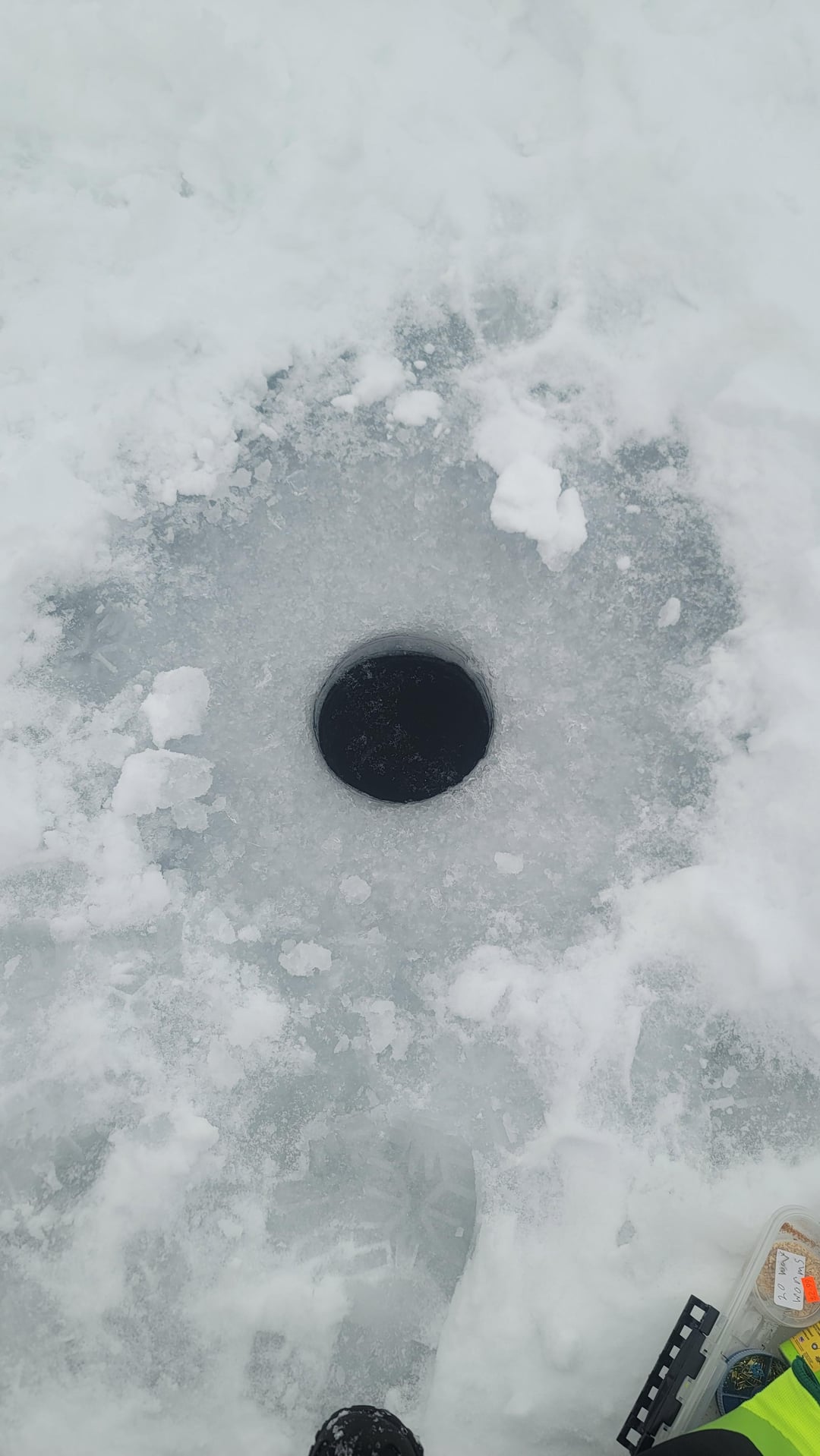 Before my holes wouldn’t cut all the way, the last part of the hole would only be a half hole making it hard to bring fish up, and my auger. It’s funny, same auger, better hole.