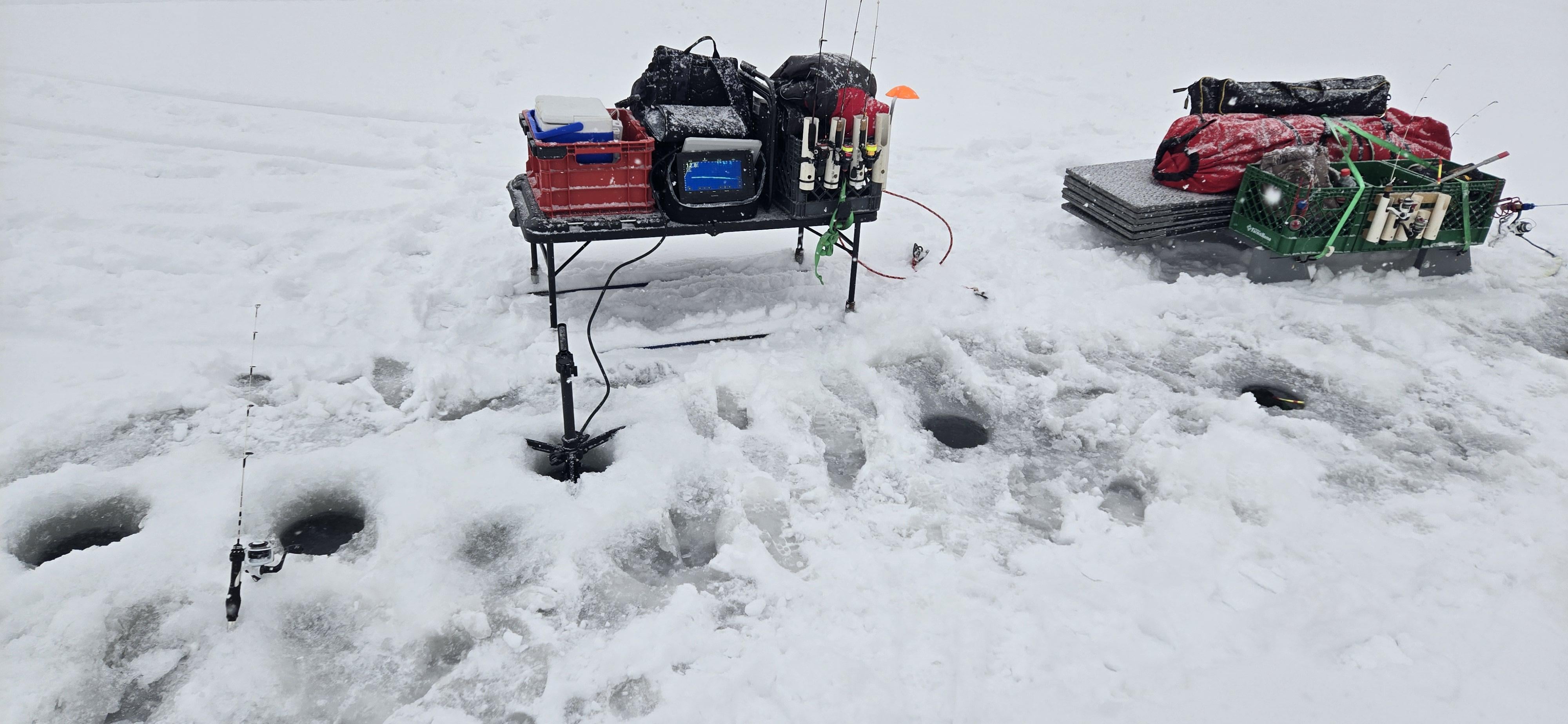 They laughed when I said I'm doing it. They loved it after we got on the ice. Need to make a bracket to hold the telescoping pole. Hoke hopping madness today. Posted by cycleguychopperguy