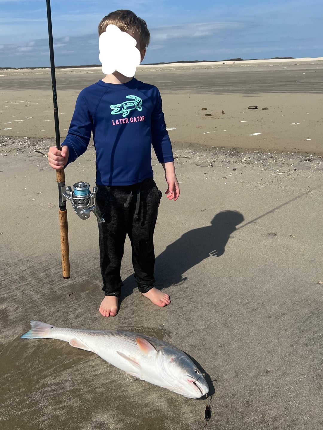 My son asked if we could go to the beach to look for shells and catch on his (4th) birthday. He lucked out and caught his first oversize red (28.5”). You know it’s game time when the tongue comes out over the upper lip 😂 First gut was full of fish from 16”-28.5”
