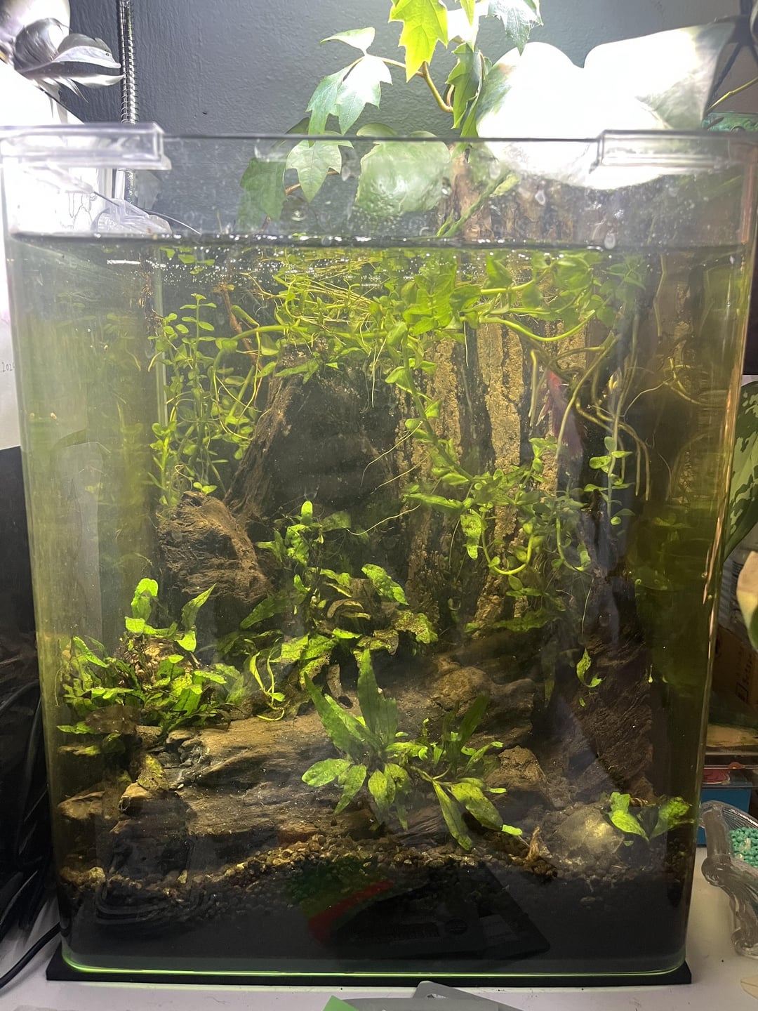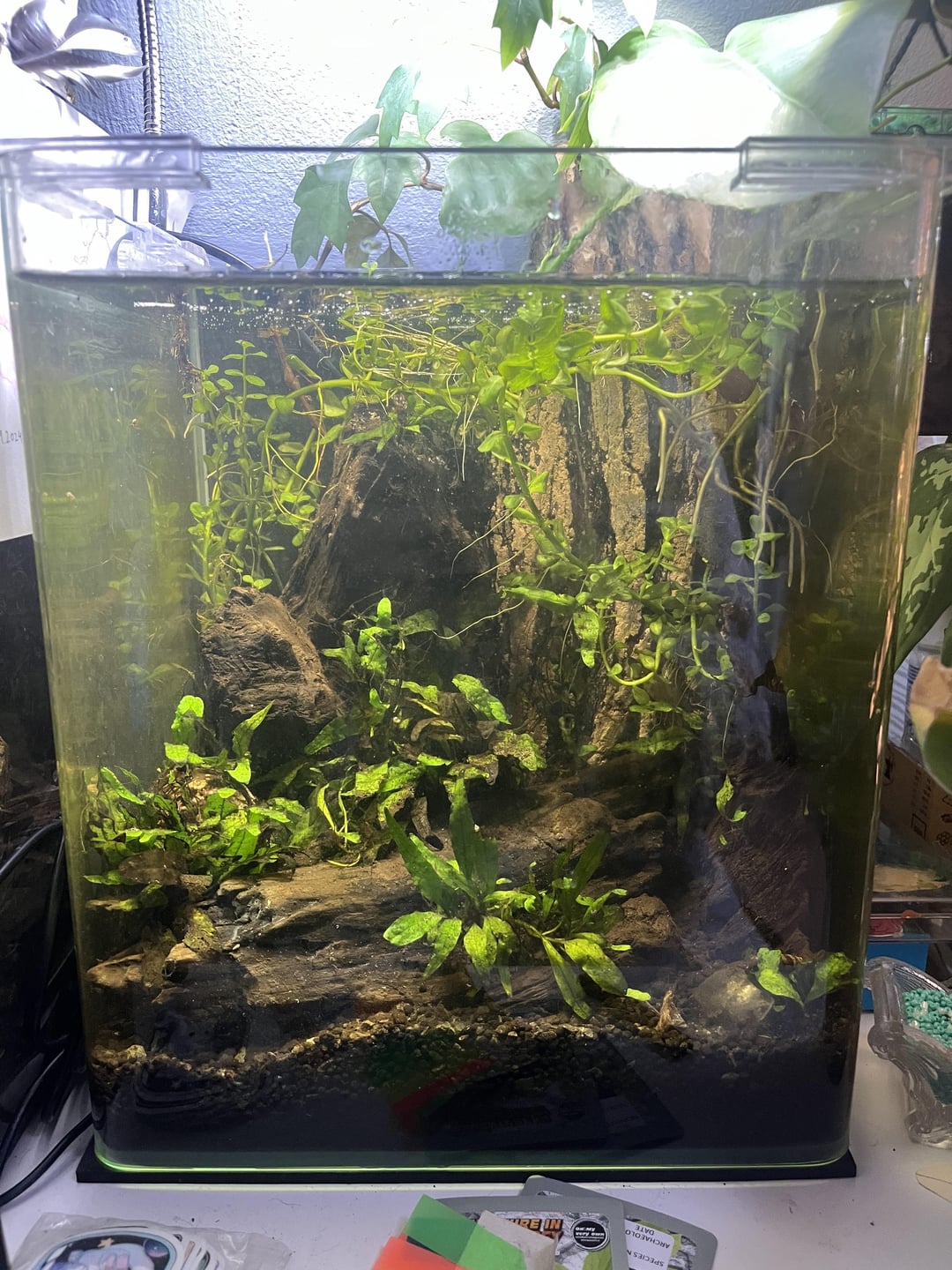 Some info: around 5 gallon tank cycled for 1-2 months, has heater set to 27 degrees Celsius, water filter always on, fully planted tank, no other fish in the tank, water parameters are all good but the hardness KH is a little high