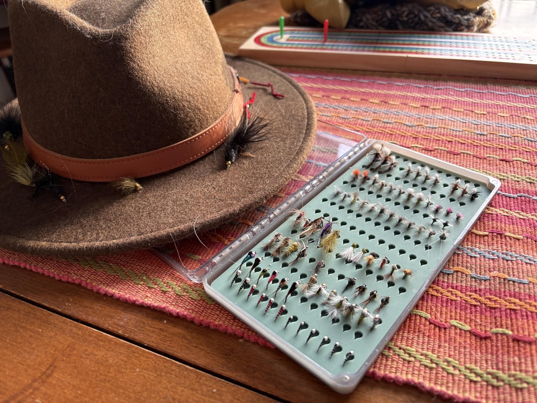 Hat has the wooly buggers and squirmy worms, which I don’t often use but like the option.