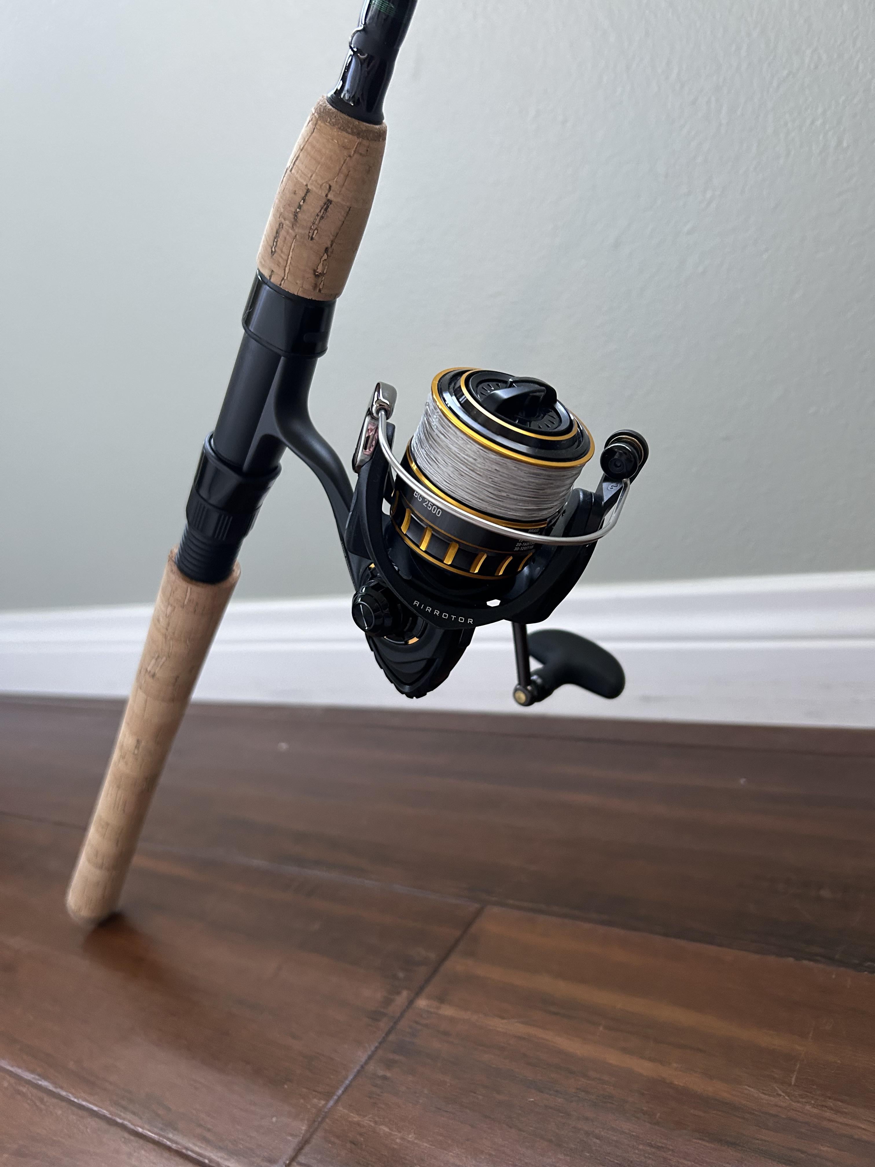New-ish light setup for SoCal. Daiwa bg2500 with 20lb braid on Daiwa north coast 9ft 6-12lb Using for surfperch, halibut, croaker, etc. Posted by iamthekingofonions