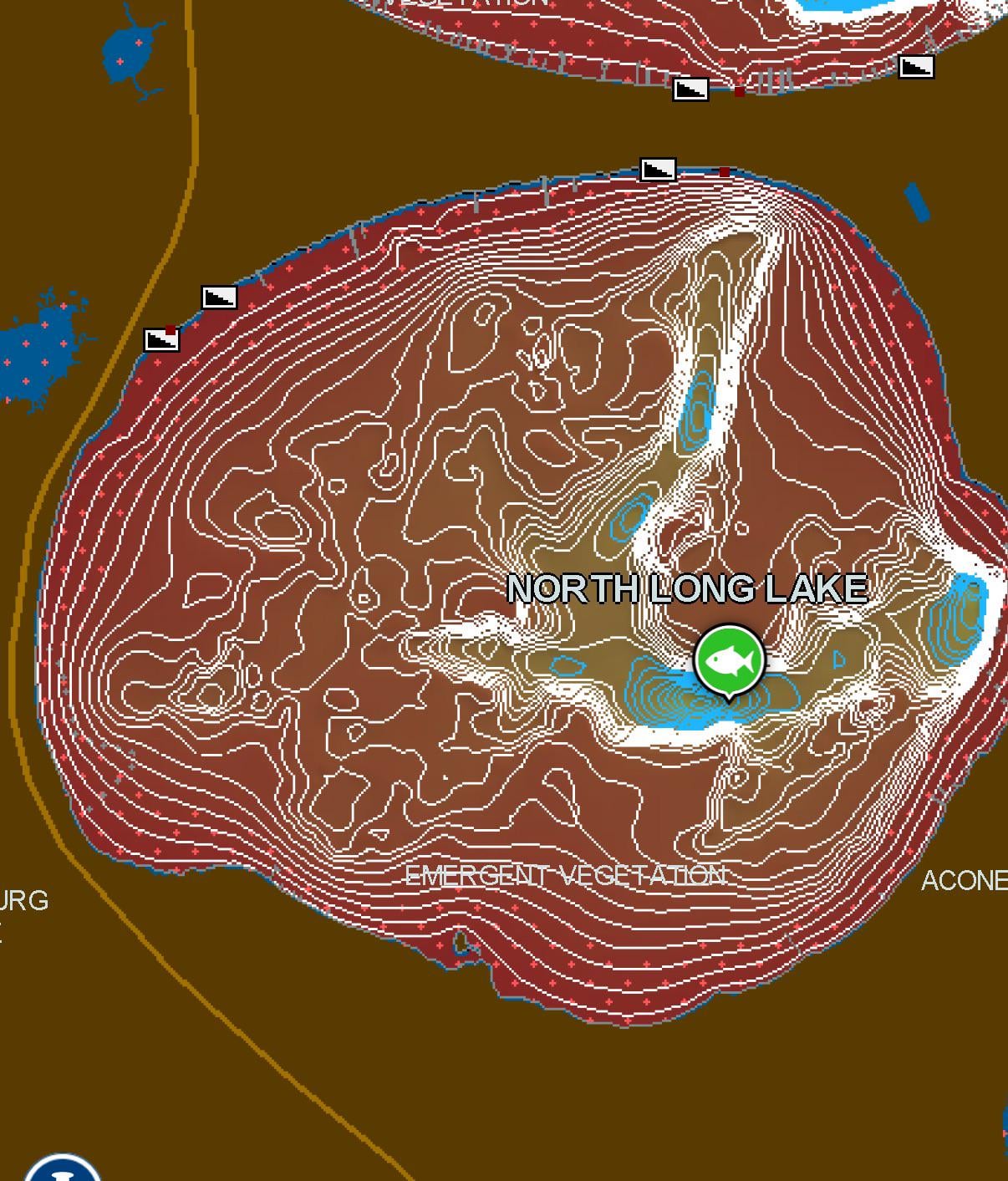 My wife and I are heading to north long lake in Minnesota. The weather has been below 0° for a while and will be up into the 20s and 30s this weekend. We’re targeting walleyes, perch, and crappies. Any suggestions would be helpful. The green fish icon is where we were a few weeks ago.