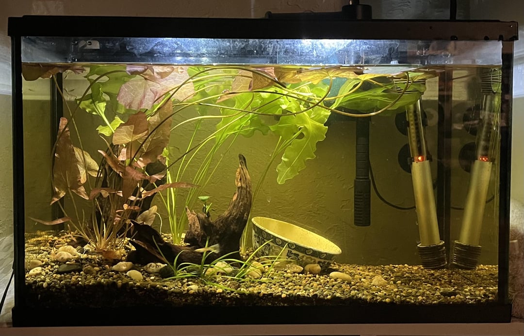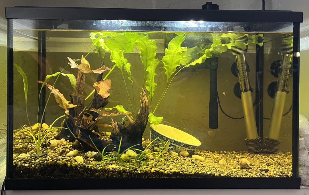 Probably going to switch out the taller green plants with a more tank-appropriate sized background plant. The current ones are growing too big for this tank.