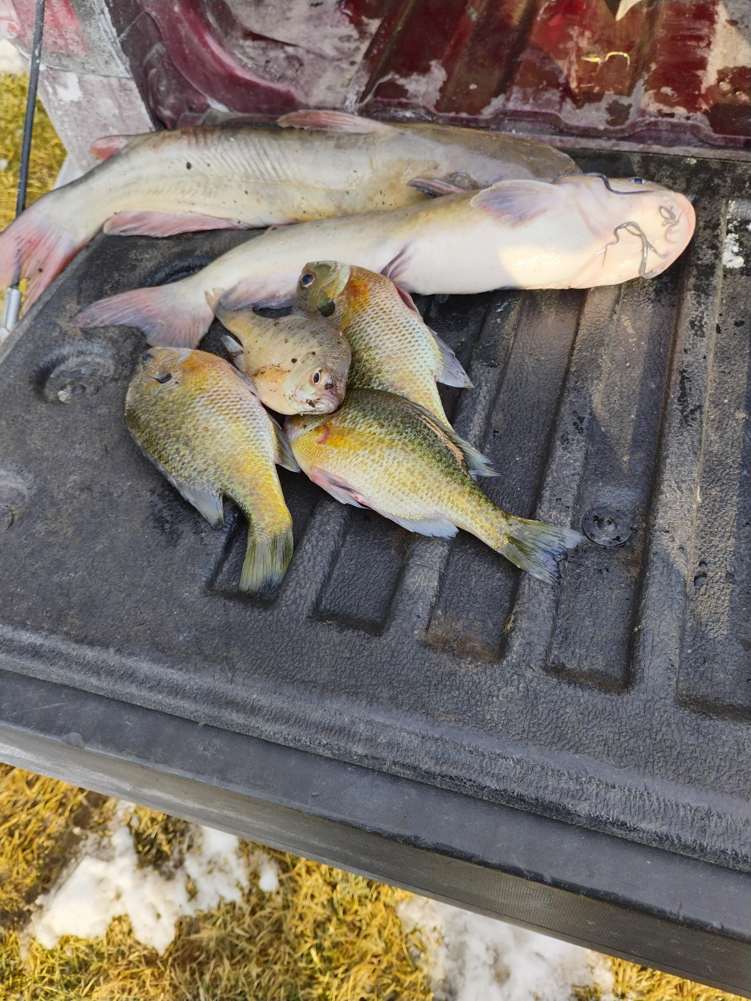 Ok so I'm not new to ice fishing but I'm getting more serious about it … I got tip ups, ice rods, a small assortment of jigs. The ponds I fish have bluegill, small bass, catfish like you see which I catch on cut bait on tip ups… But I'm planning a trip further north to a lake that has some walleye, pike, bigger bass, and trout