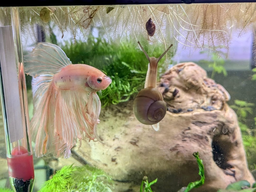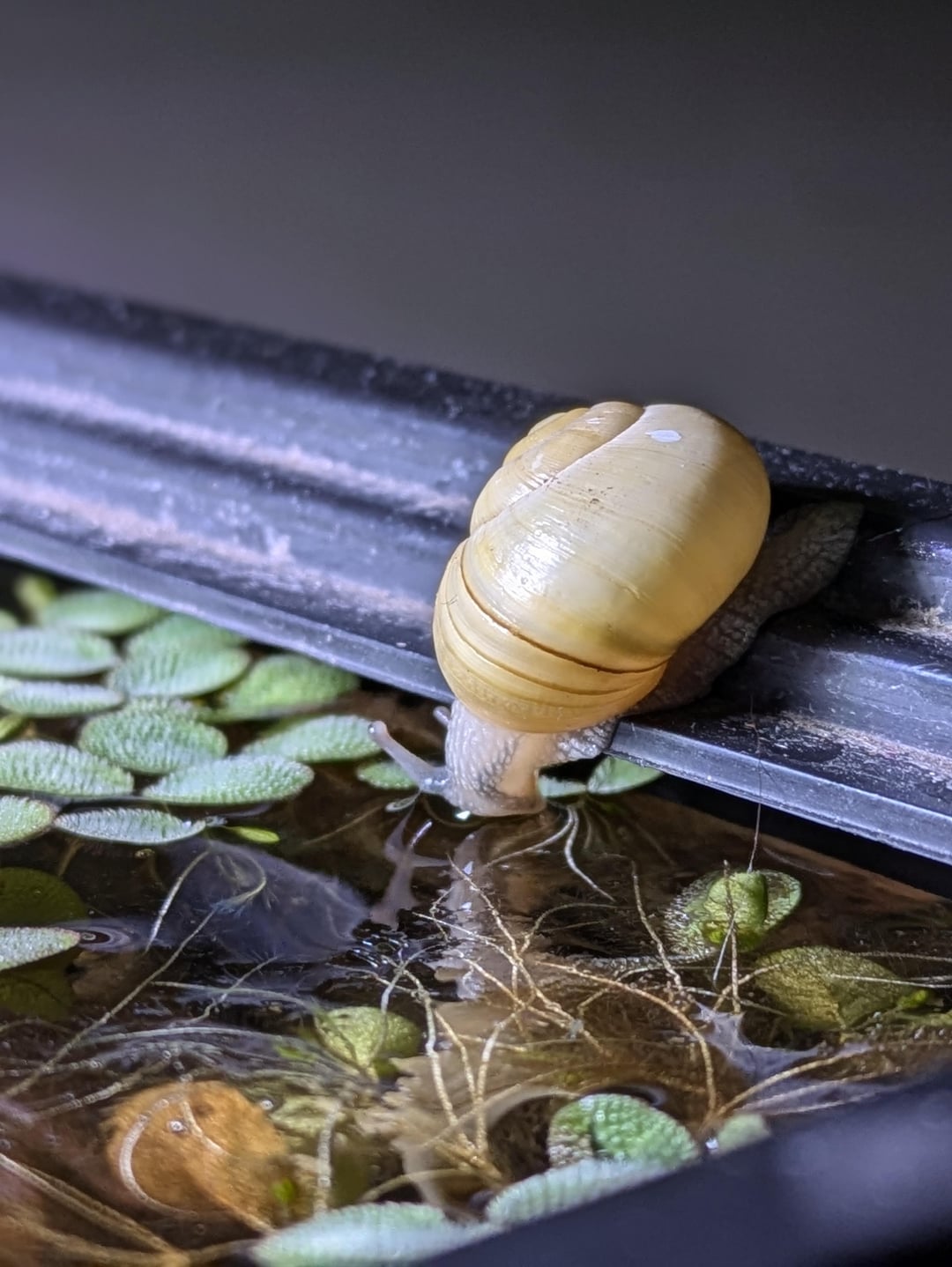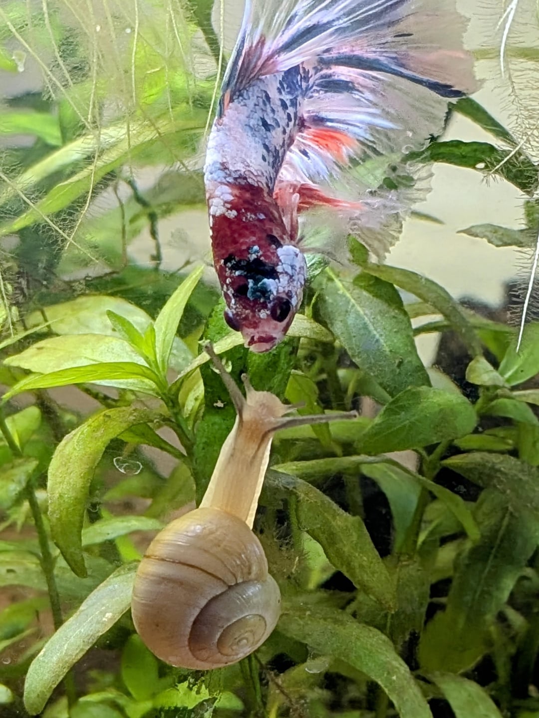 Topaz is not impressed by the land mollusk. Jimmy Confetti is quite intrigued. Snail is an idiot