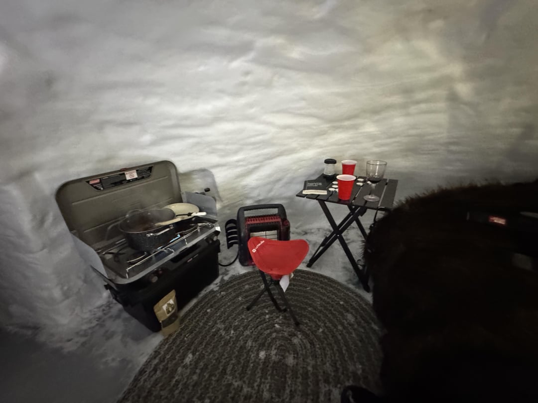 2. I built an igloo a few winters ago, put floor mats down, had a heater going, a “fridge” in the wall. Me and my friends had an amazing week cooking dinner and drinking cocktails in my igloo. Then it melted…. It was amazing.