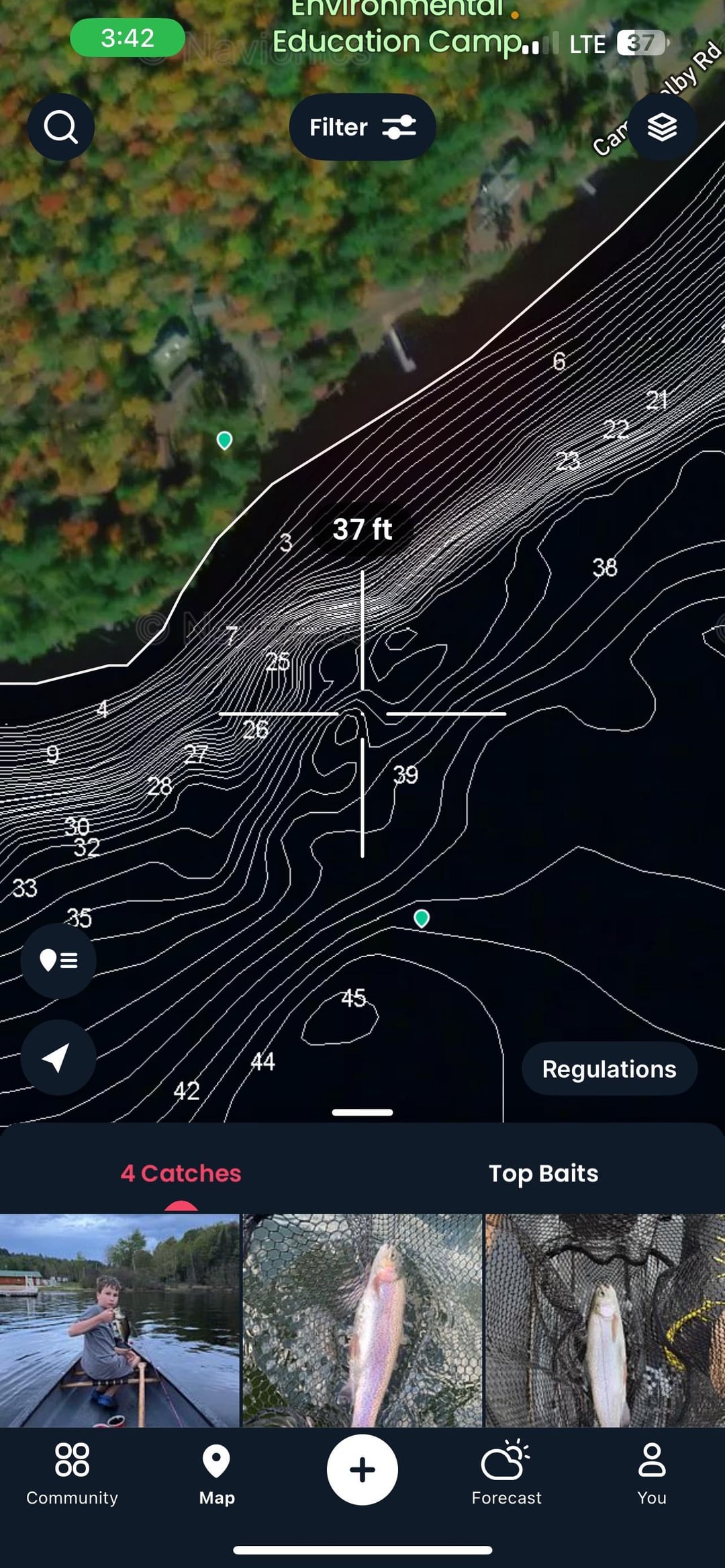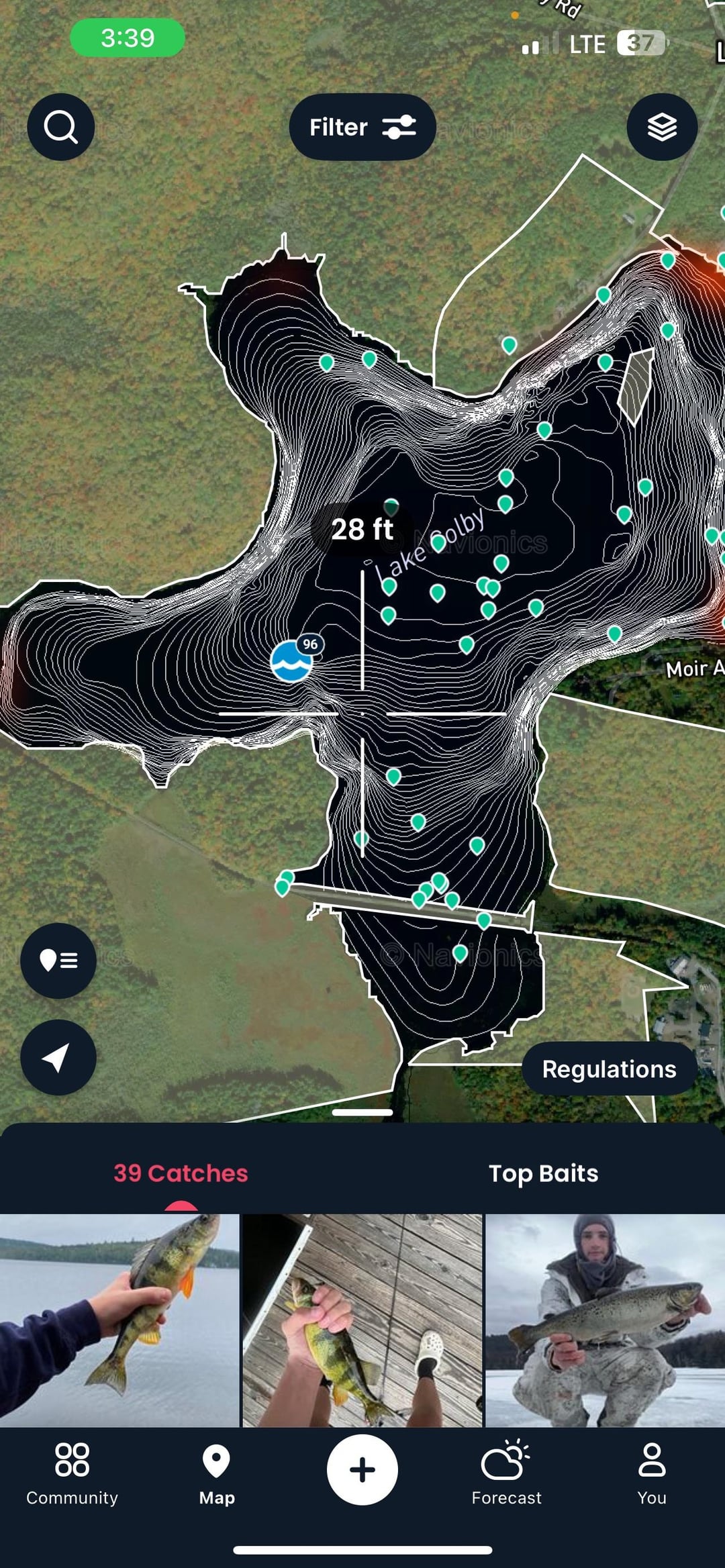 Looking to see opinions on where to fish this lake. There is a contest this weekend for biggest perch, pike and lake trout. So open to opinions for any of these species. I was thinking of going the the steep drop off pictured at 37ft. Lake max depth is 40+ ft