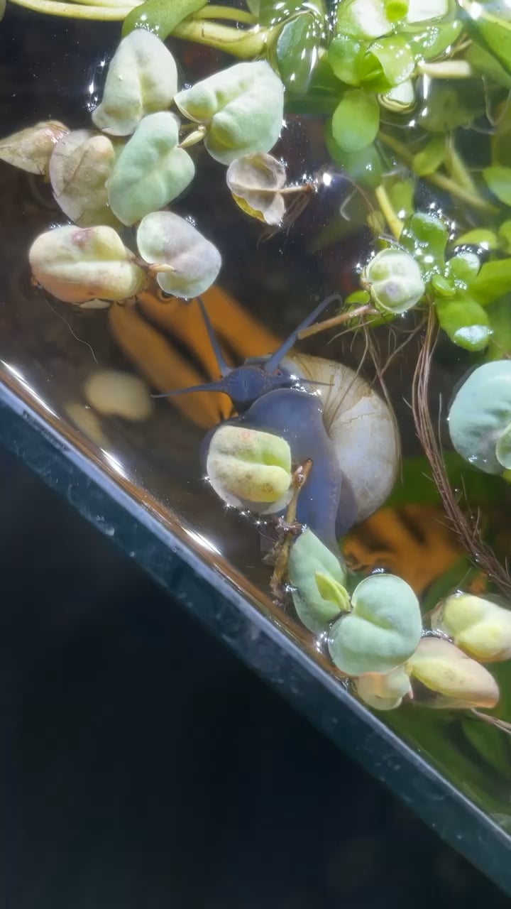 Just added these floaters to my tank and this snail keeps climbing up and sticking to them upside down lol Posted by YourFavorite_NB