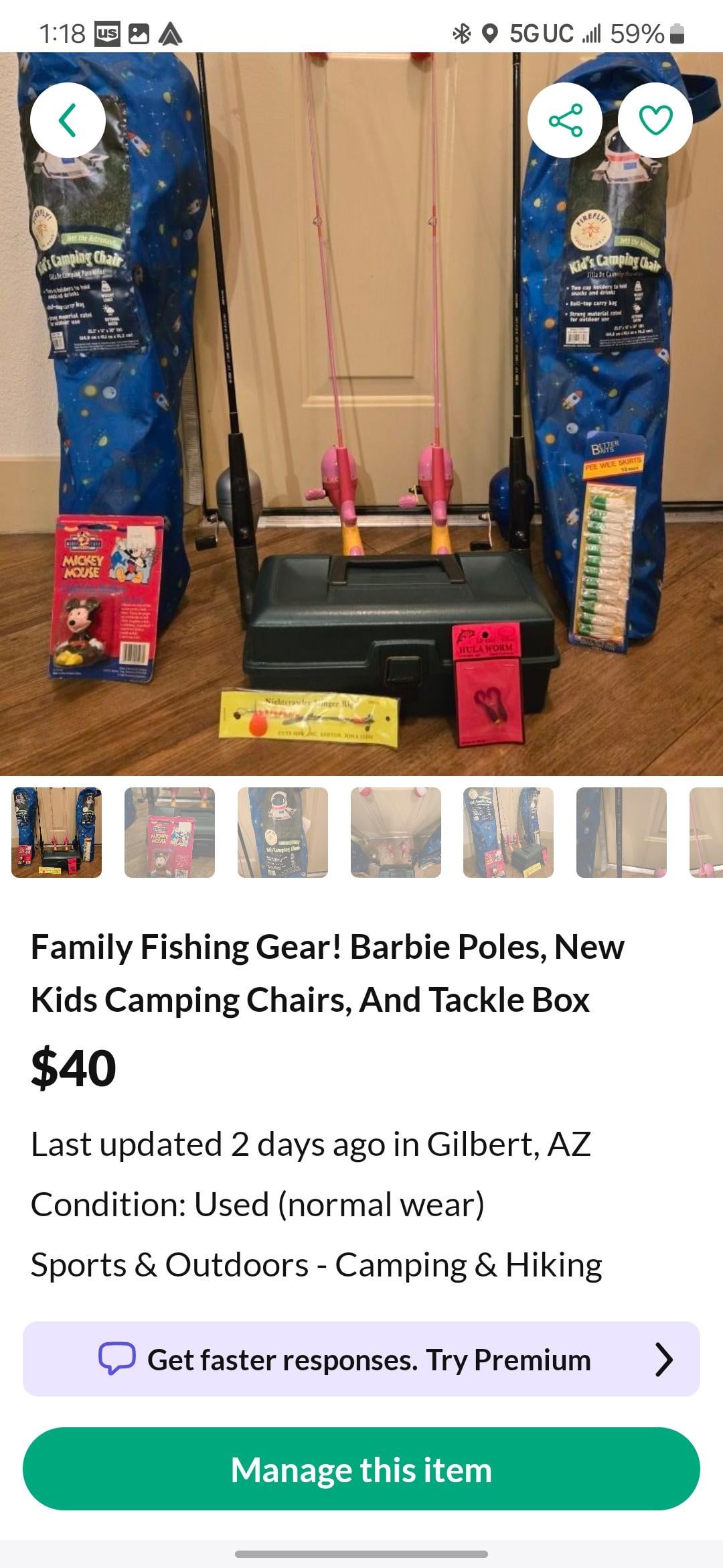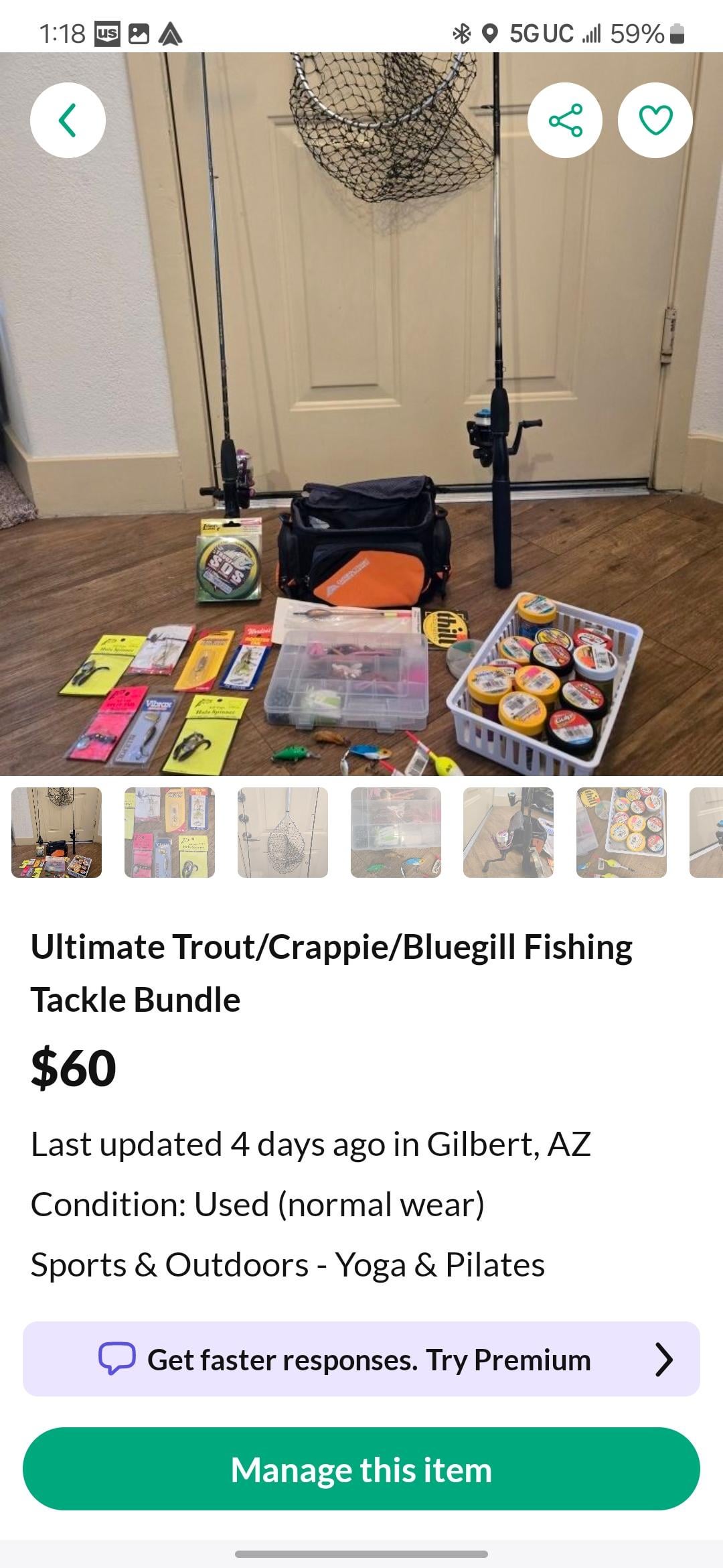 I've been getting into flipping used Fishing Gear lately. It all started when I saw a really cool bass bundle for $140. I bought it, took what I wanted, and put up the rest for $120. The person who bought it was a beginner and I taught him lots of stuff when he came over to pick up. Then it dawned on me I could source gear and bundle it in a way that would be cheap and easy for people to get back into fishing. I source gear, take one or two things for myself, and typically make $5 a deal so I don't feel like I'm a sleezy re-seller but an ethical one lol. I've sold about 6 lots in a month and connected some very cool people with starter set ups, but things arnt picking up as fast as I thought they would. Are the deals in the pictures I posted reasonable? Or am I asking too much?