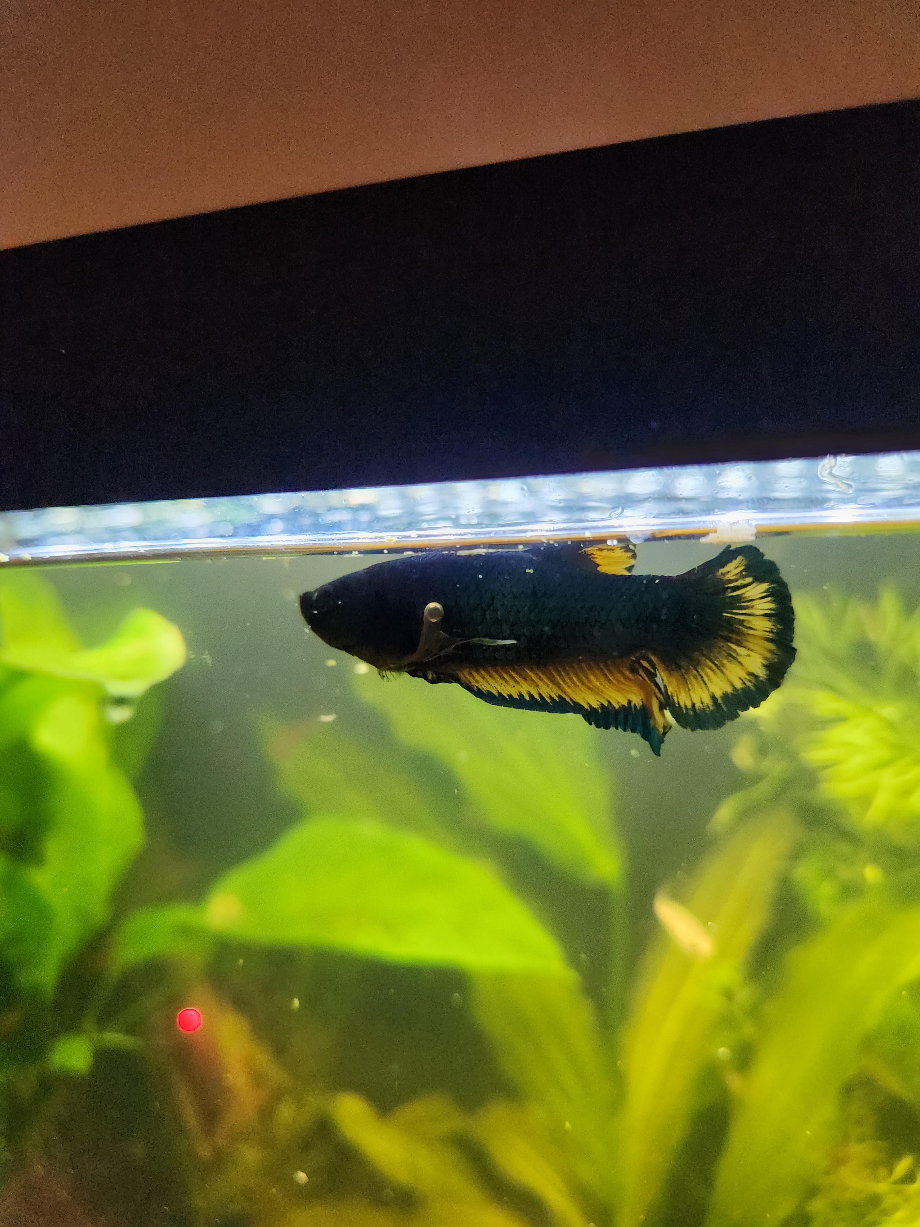 So this happens from time to time and I think its super weird. It seems to just be an air bubble? If I feign trying to catch him it'll knock the bubble loose and a couple days or weeks later, it'll randomly happen again. Always in this spot. It ever so slightly will mess with his swimming because his dangly fin will float slightly but everything is normal when the bubble goes away.