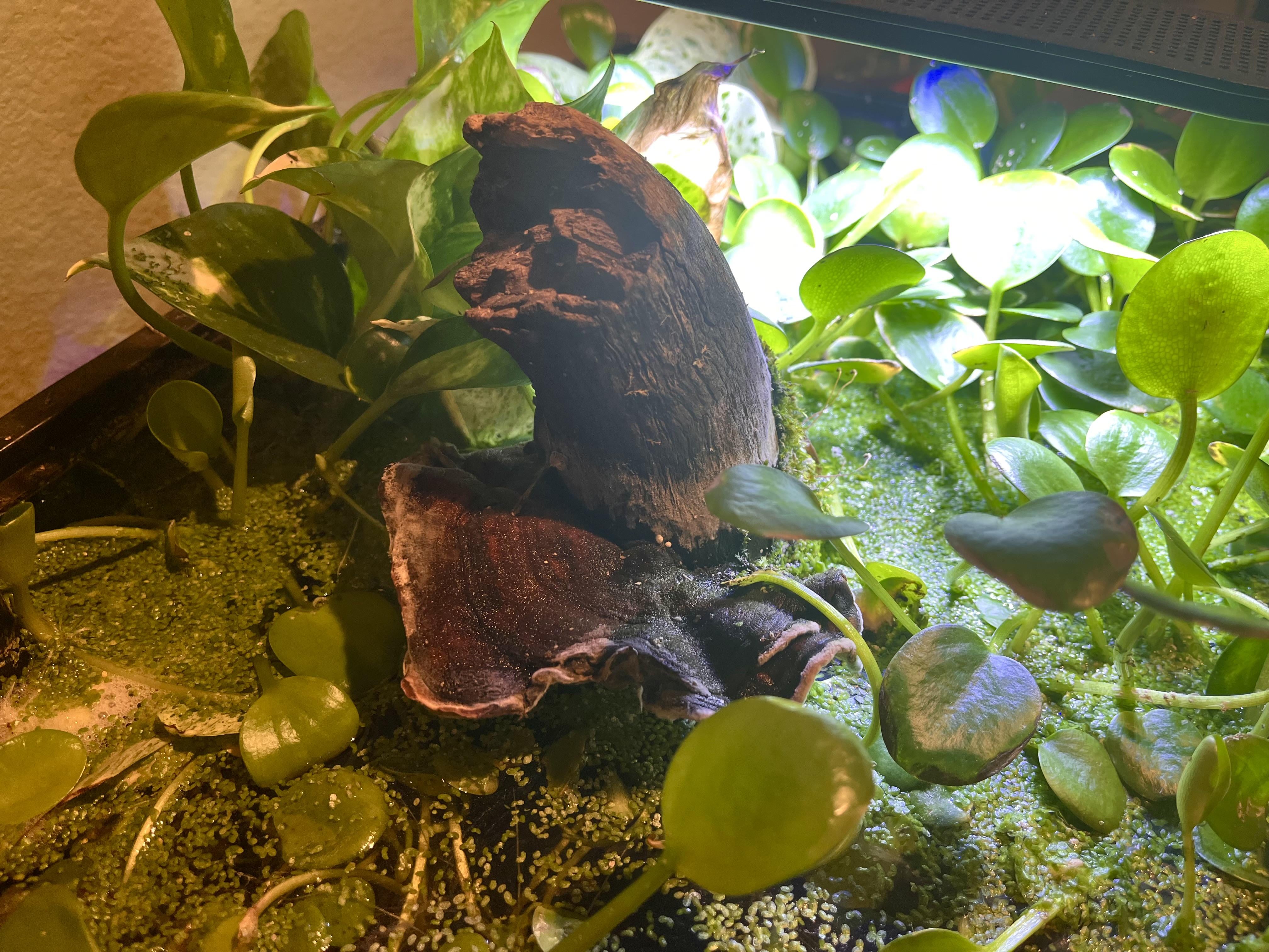 Aquariums: My volunteer turkey tail fungus on protruding driftwood. Almost 1 year old!