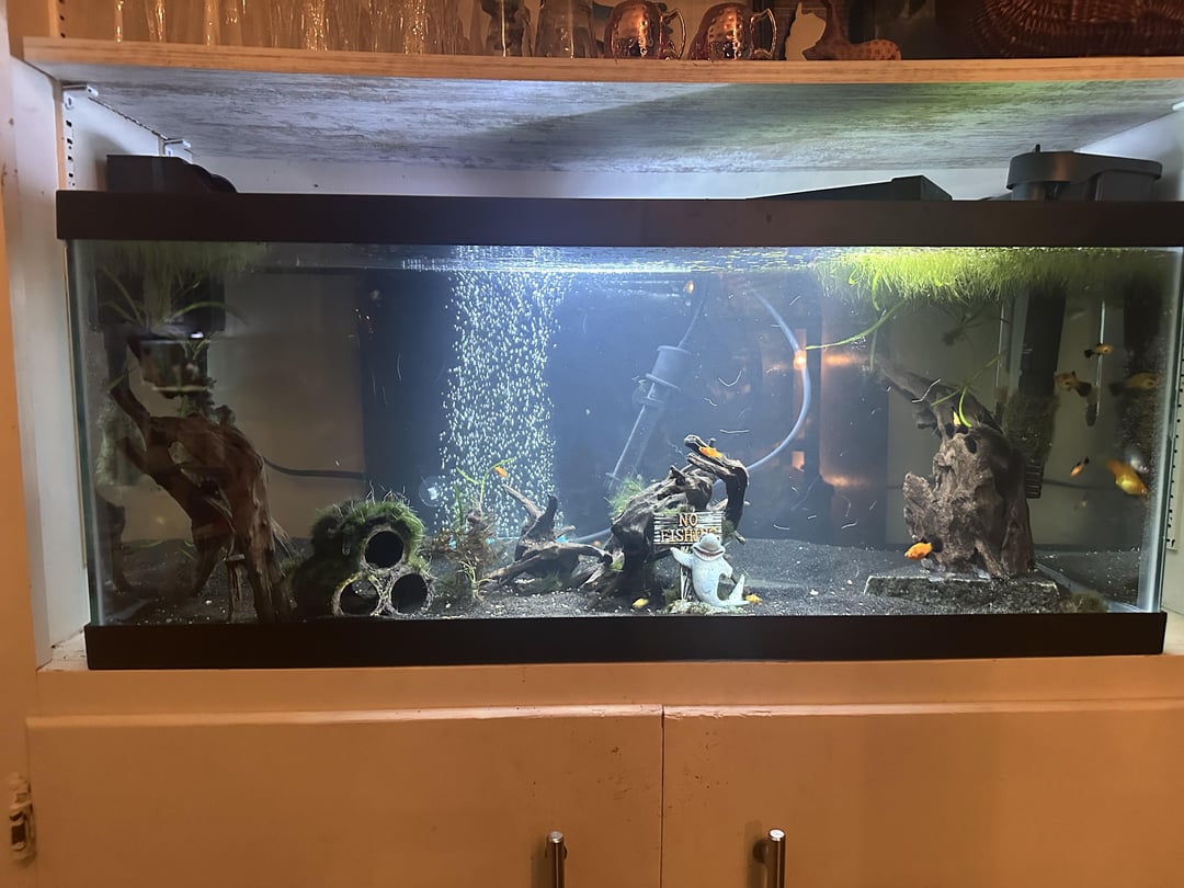My betta and group of female platys and one male bot an upgrade while the LFS had a sale on fish tanks. More babies to fill in the extra space.