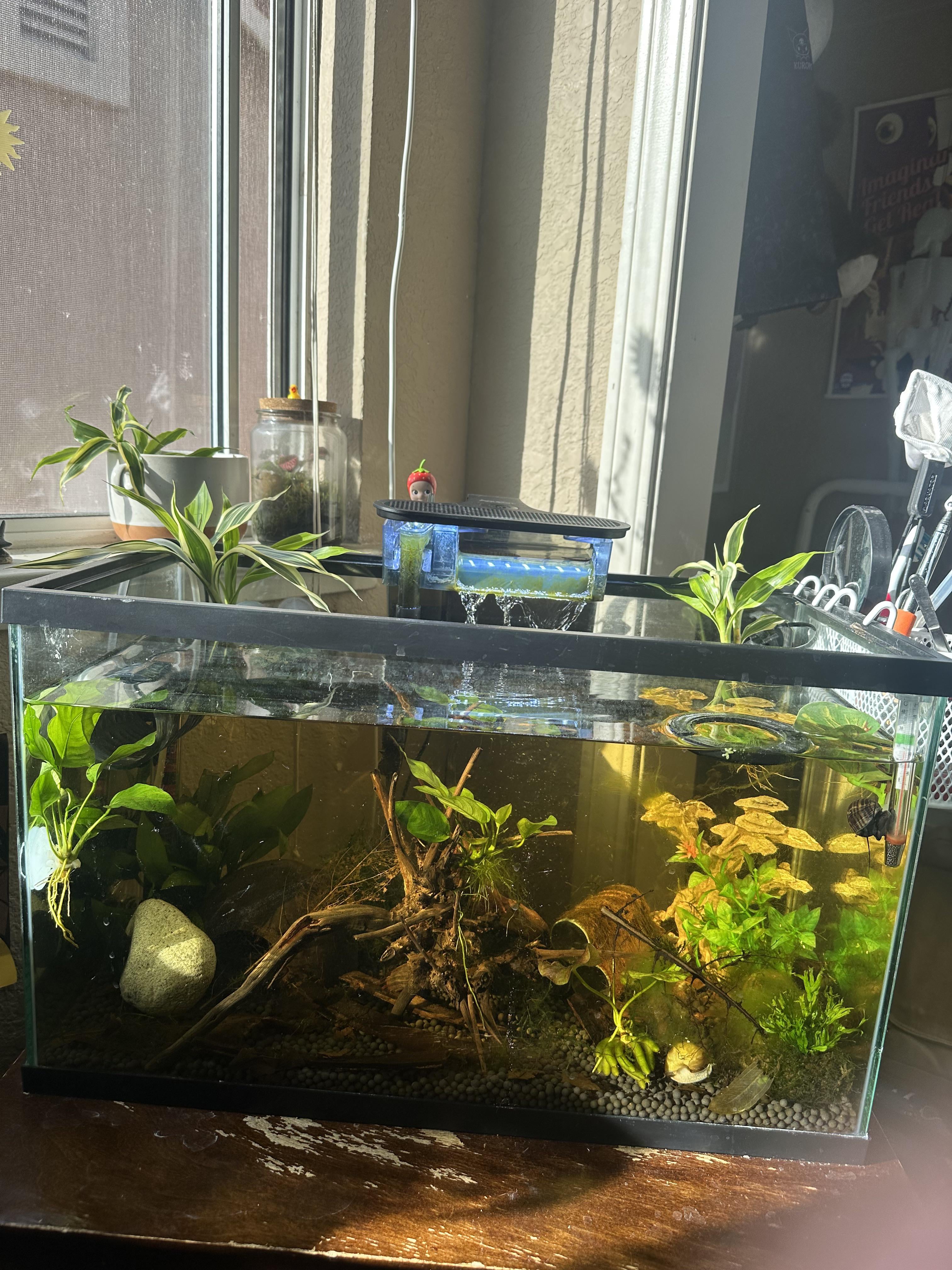I also removed the plastic plant and added a sweet potato in to grow after this picture but i’m not home to take another.