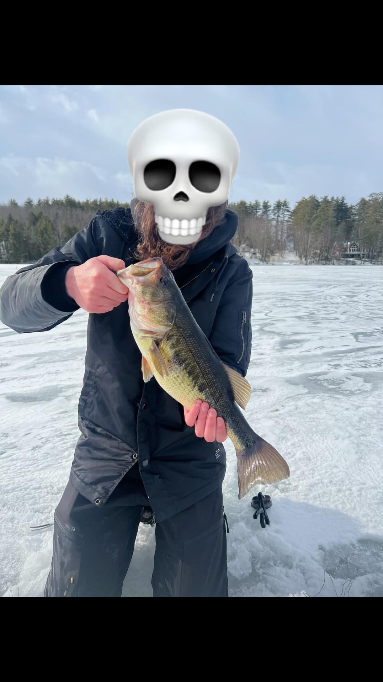 Caught this nice bass in NH on probably my last day of ice fishing this year. The ice is still over a foot thick but it’s getting warmer out and the ice was cracking like crazy today. I’m so glad to have caught a bass this year through the ice!!