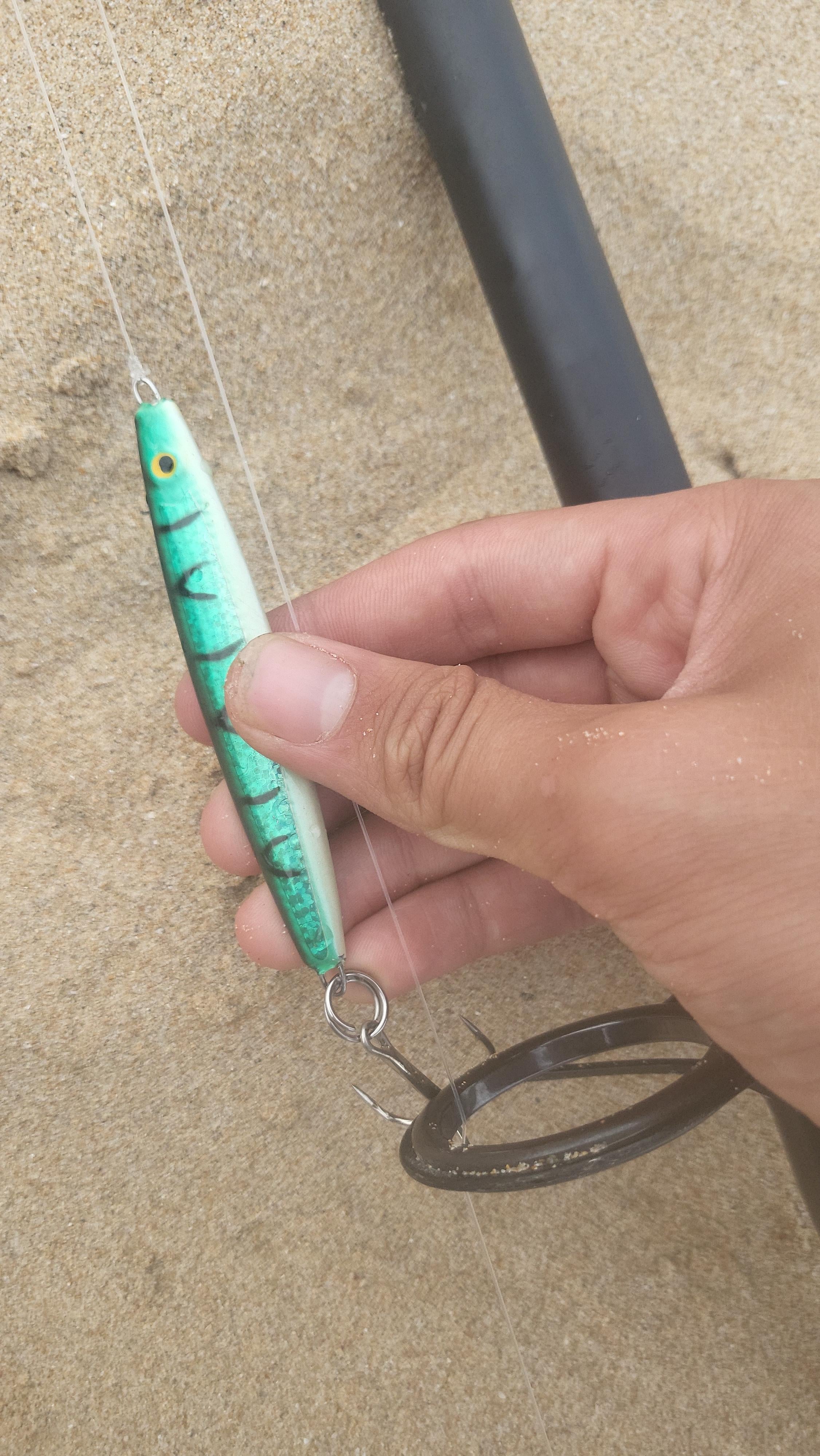 Or you horizontally jig it- Cast it as far as you possibly can, let it sink a bit and then pull the rod tip back then lower it letting the line go a bit slack. Reel in the slack as you lower the rod tip and repeat. This makes the lure kind of “bounce” through the water. Fluttering down when the lines slack then bolting forward as you pull the tip back. This is a great way to target salmon from shore.