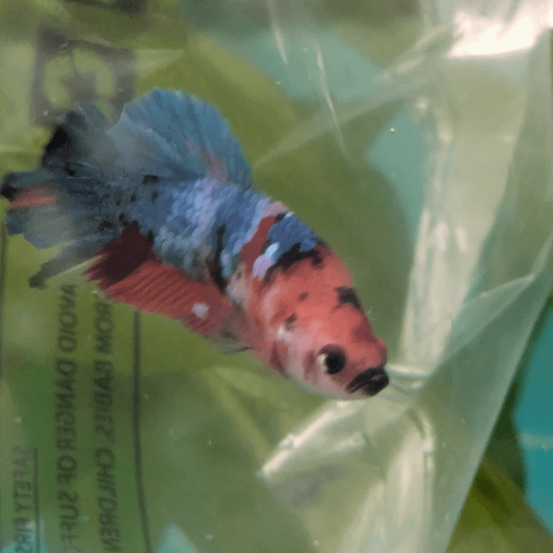 he's a plakat koi! ive been admiring this type for a long time and knew i had to have him for my 20 gallon the second i laid eyes on him. look at that BLUE!!!