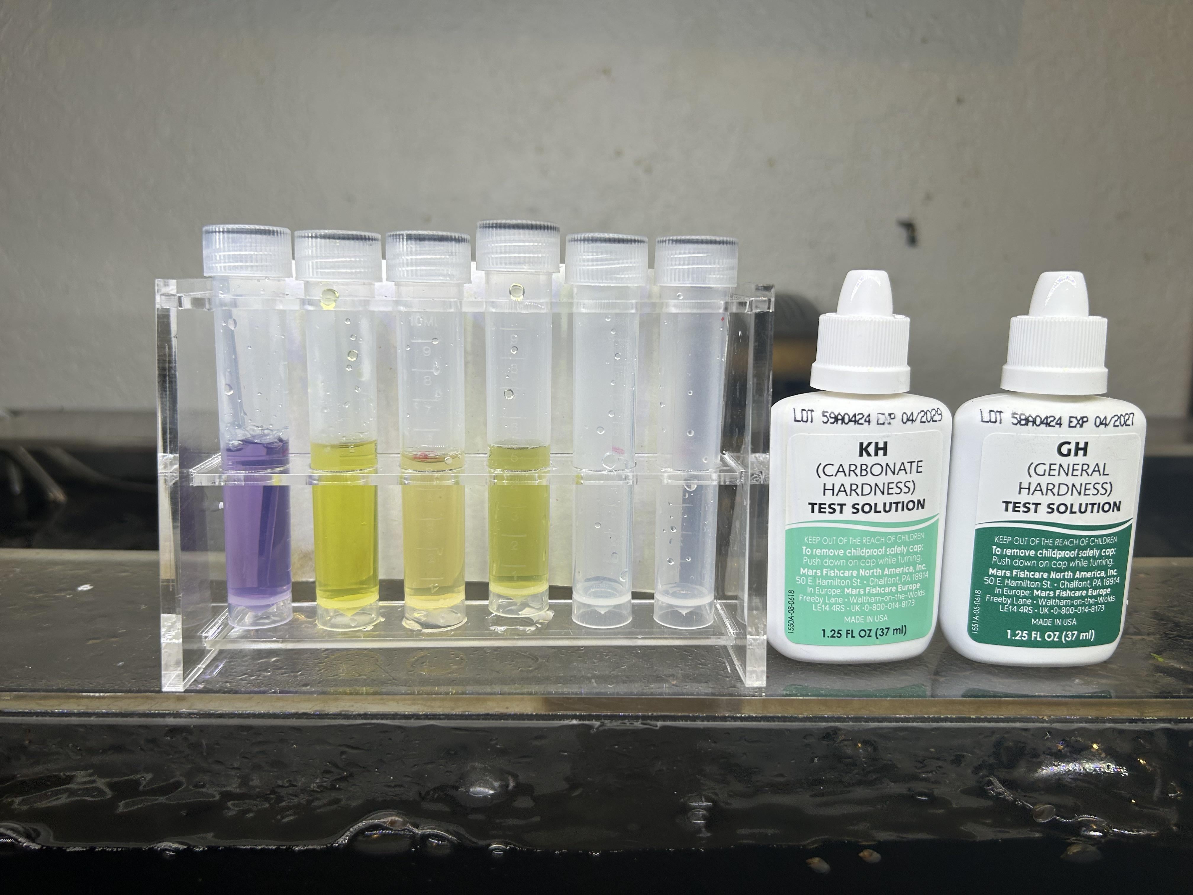 (Ignore the first two tubes – I was testing nitrites and ammonia in cycling tank)