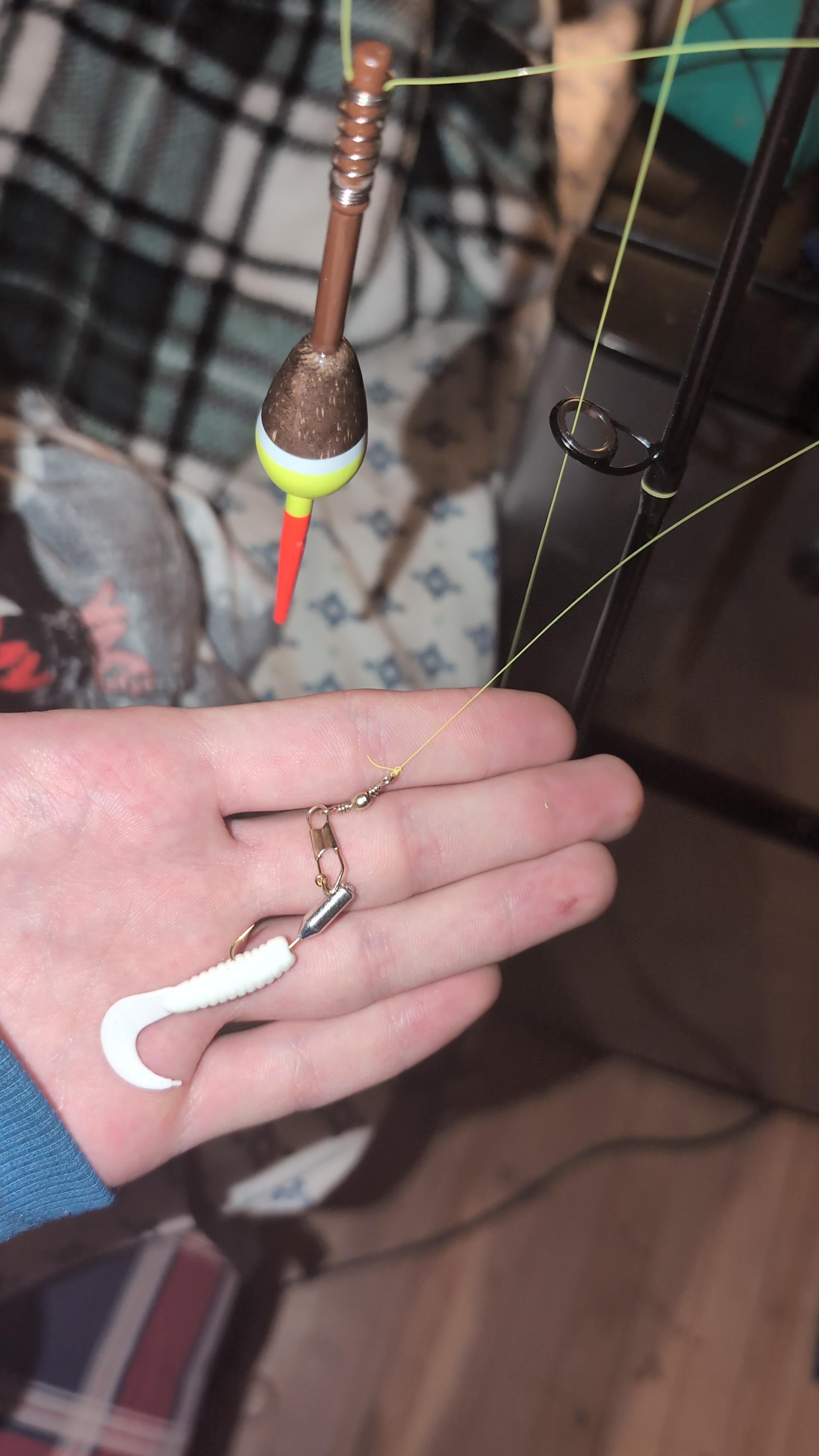 No, u don’t need the swivel clip, also that hook with the weight is the wrong type those r meant for tubes, u want a ball head jig with that type of lure, also u dont really need the bobber