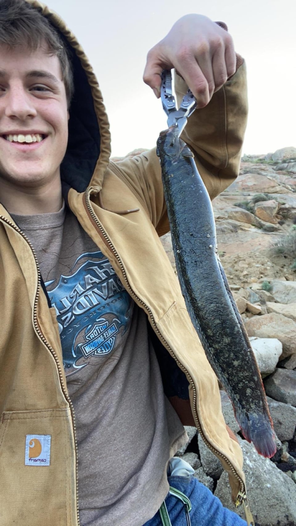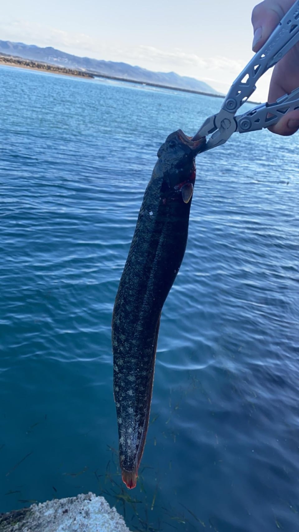 Looks more like a monkeyface prickleback eel. Technically a type of rockfish too. I fish a lot in that same area and catch them a lot around rocks. Best tasting fish in my opinion but a pain to clean cus they are so slippery. Cool fact about them, they can survive out of water for like 36 hours