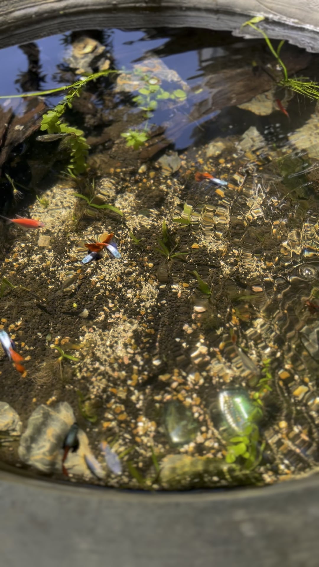 I recently had to close down my office which meant my two 20 gallons had to get taken down too. Instead of moving them into my house I moved them into this pot outside my house.