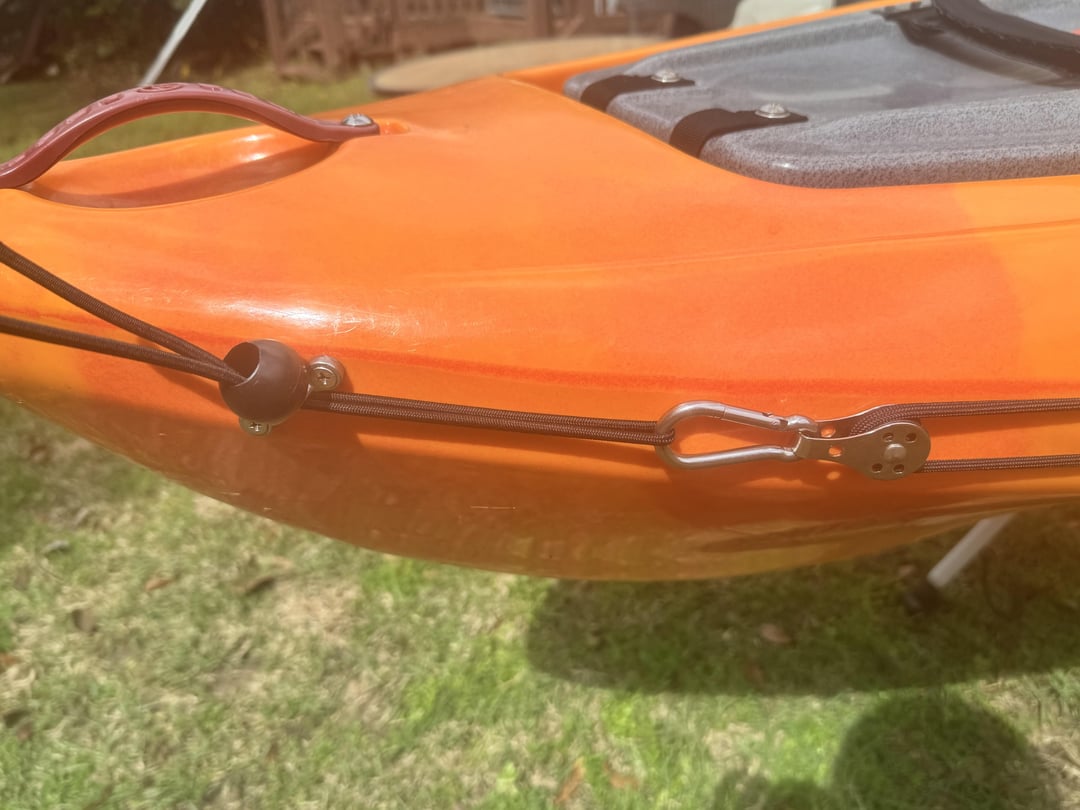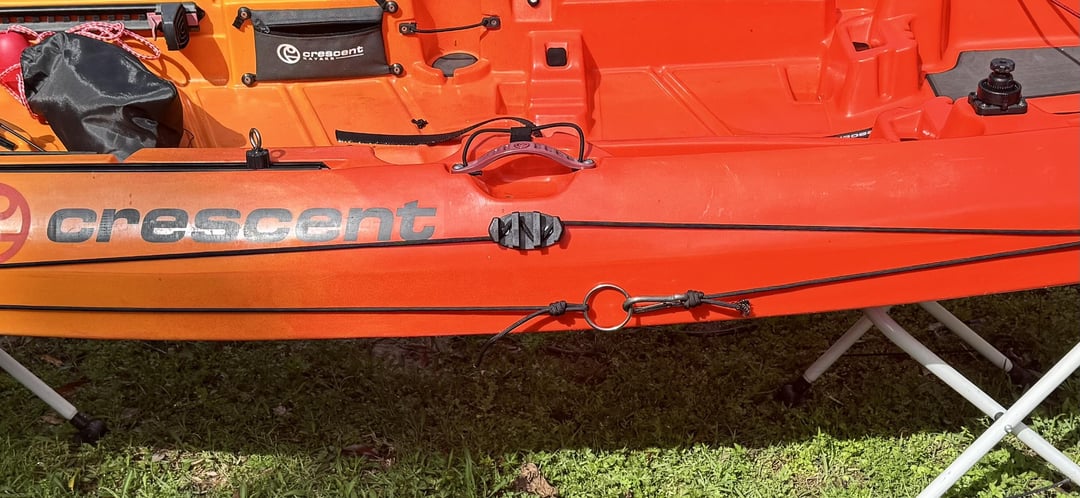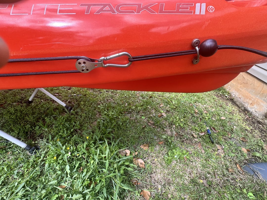 Also remember that the loop on the trolley is for running your anchor line through, it’s not for attaching to. I have a cleat on my gear track that I tie the anchor line off to and then I use the trolley loop to control where it comes off my kayak.