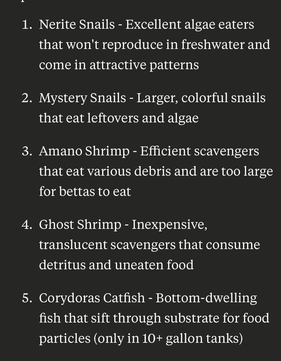 Nerites are neat, but if you get a female she’ll lay unfertilized hard to scrape of eggs on every surface they see fit.