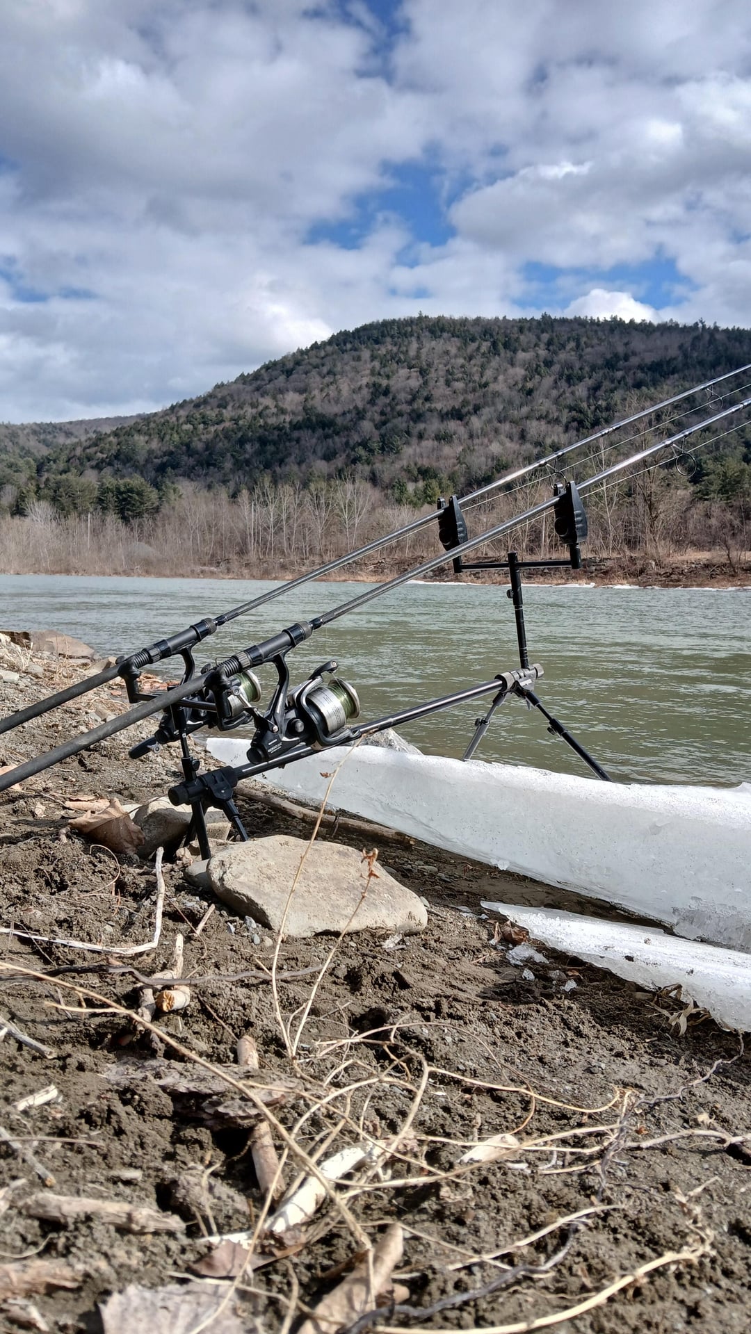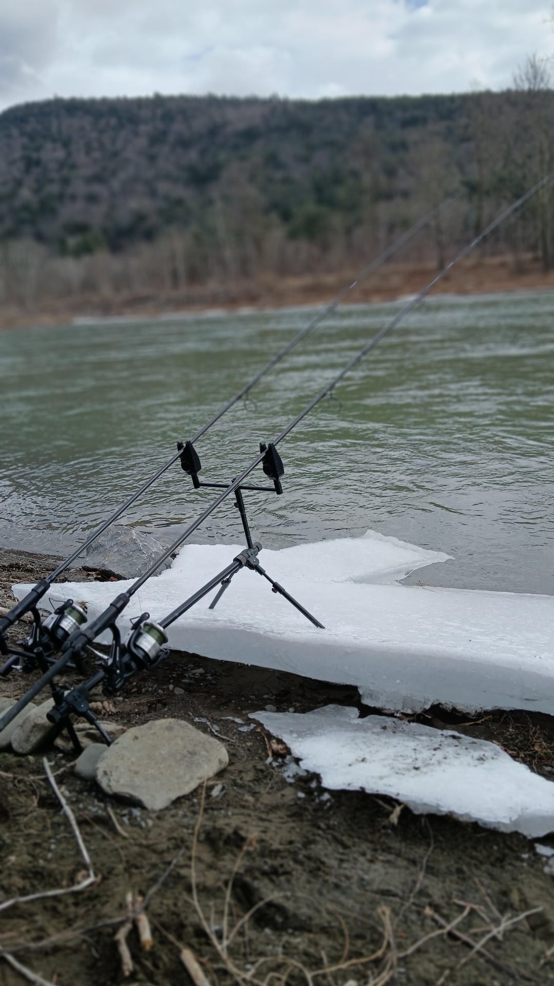 Found open water on a mountain creek. The local wildlife officer (bailiff) let me know she had seen large carp in this section during summer. I am sure they are around but no bites after several hours. Short video of the session linked in comments.