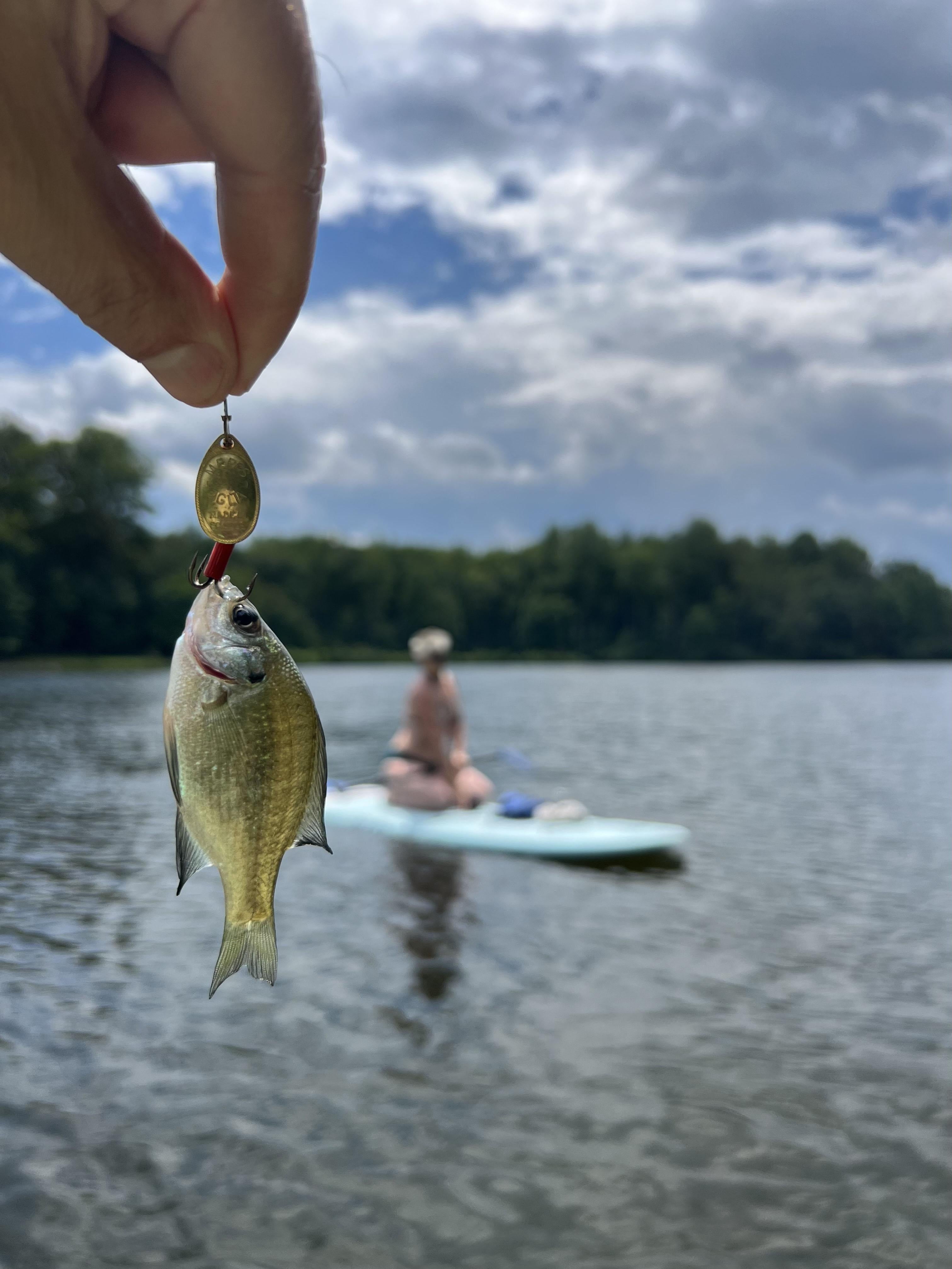 This VERY ambitious Bluegill, and my wife on her paddle board.