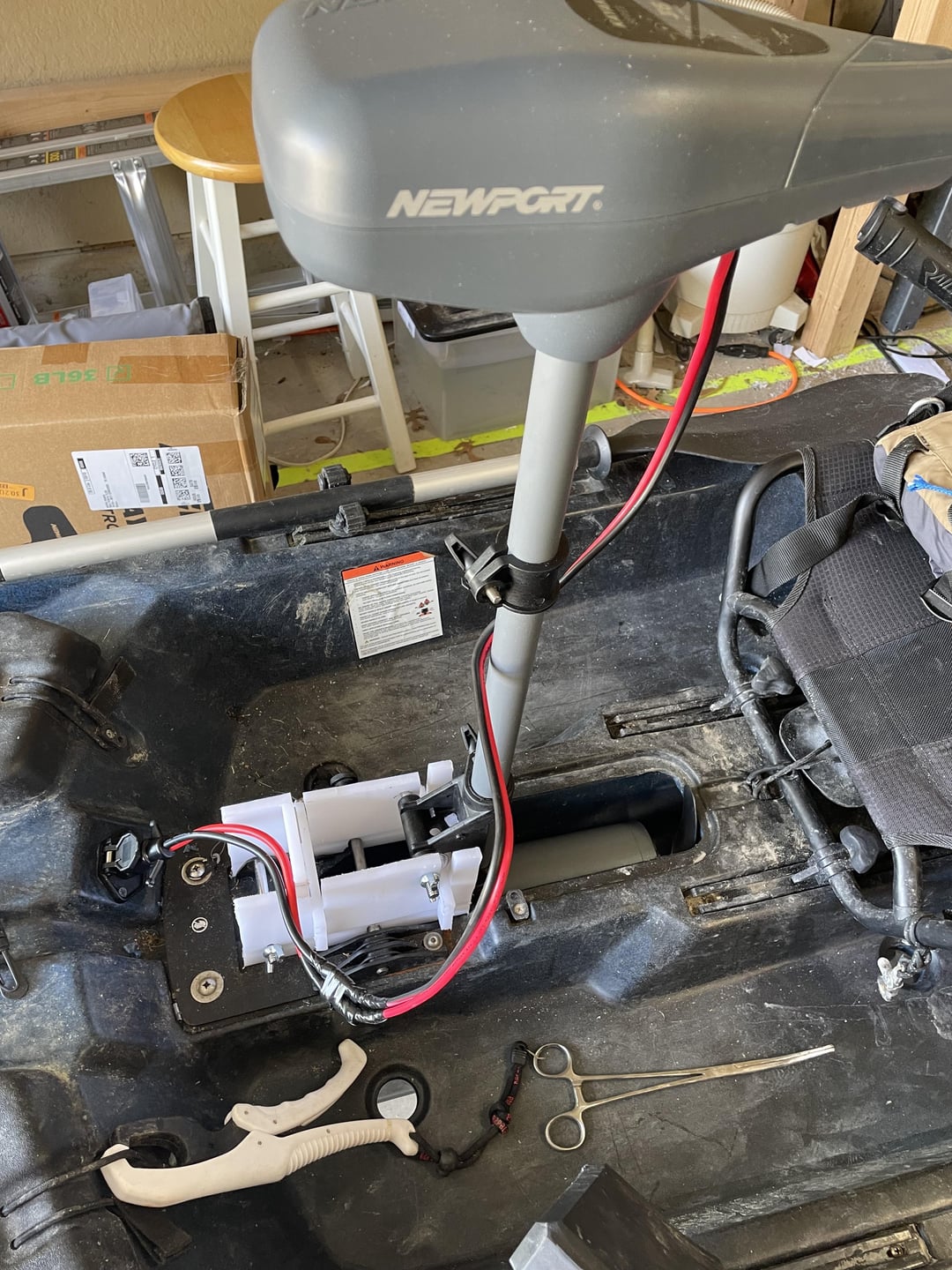 I finished my home made mount for dropping my my Newport 36 lb thrust motor through my drive shaft hole on my Peacador pilot pedal. I’m leaving these pictures here for folks who want to emulate the design for their own purposes.