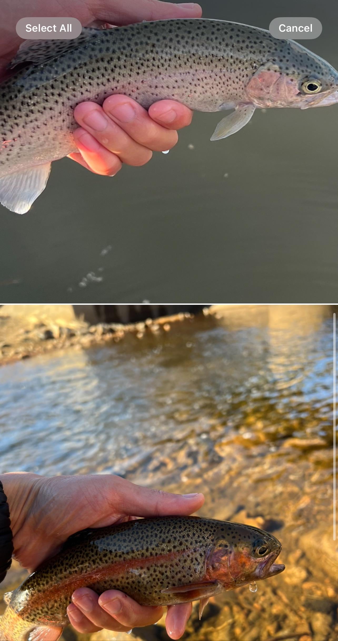 cmonster556 on March 21, 2025 3:57 am Rainbows come in a wide range of appearances. A deep water fish might just be silver with a green back, little or no spotting. Shallower fish are darker and more spotted. A spawning male might be nearly black.