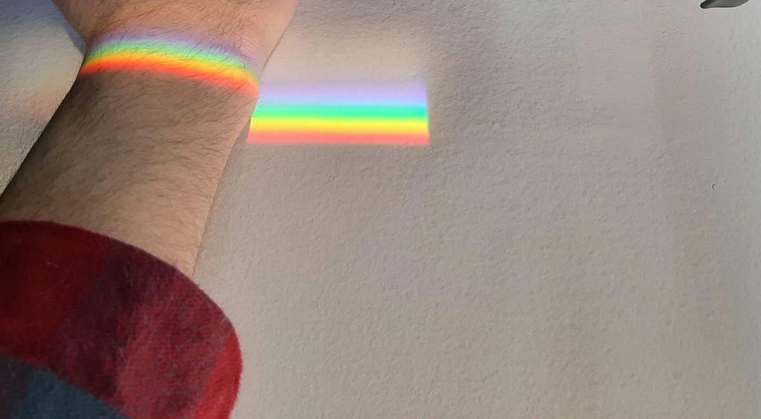 The sun light refracted through the water and glass made the most intense rainbows Posted by chem-ops